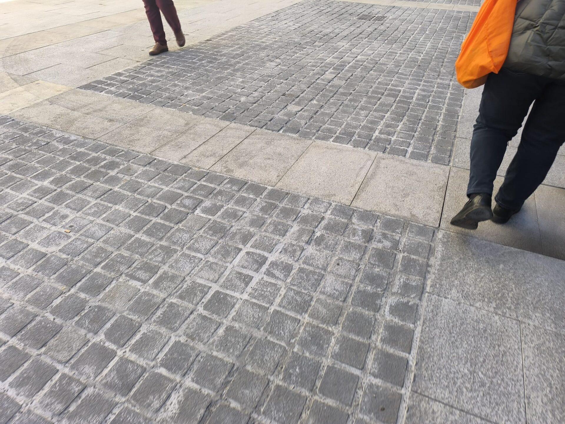 El cambio visual es drástico. De piedra más brillante pero resbaladiza y desgastada por el uso a una nueva, mate pero con mejores condiciones de durabilidad, capaz de aguantar desde casi 40 grados en verano, hasta capas de hielo en invierno.