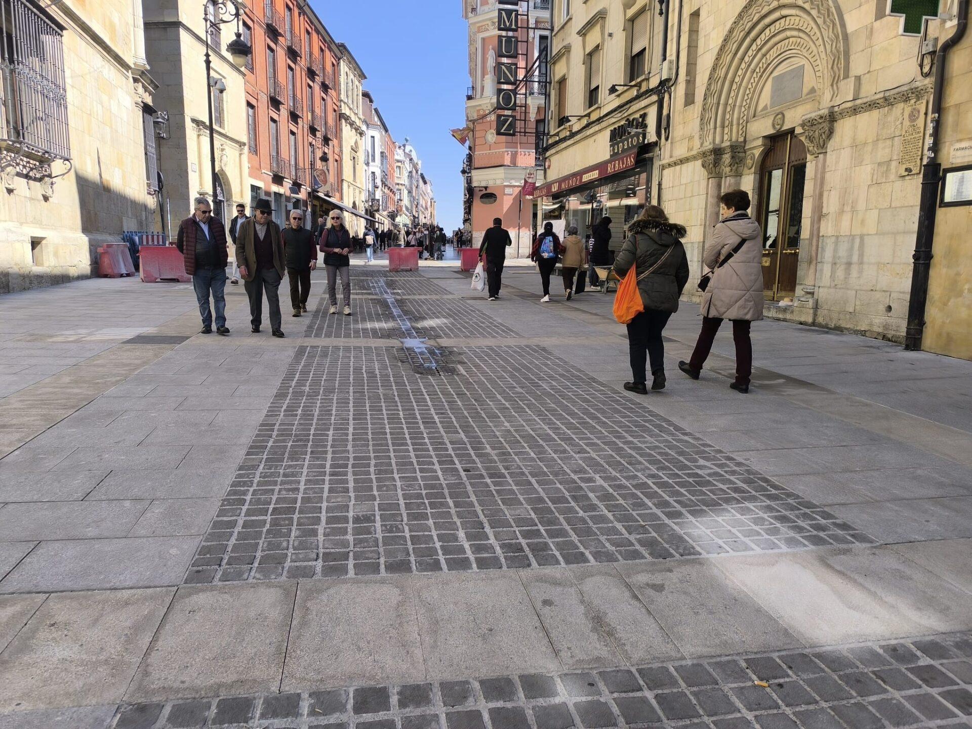 Ya se puede pisar la nueva Calle Ancha, al menos parte de ella. La fisonomía del centro histórico de León ha comenzado su transformación definitiva. Los operarios ultiman estos días los trabajos en el primer tramo de la gran reforma de la Calle Ancha, centrado en el entorno del Palacio de los Guzmanes (sede de la Diputación) y la Casa Botines. El objetivo es inminente: retirar vallas y maquinaria antes del Viernes de Dolores para que el epicentro monumental de la ciudad esté totalmente despejado para las procesiones de Semana Santa.