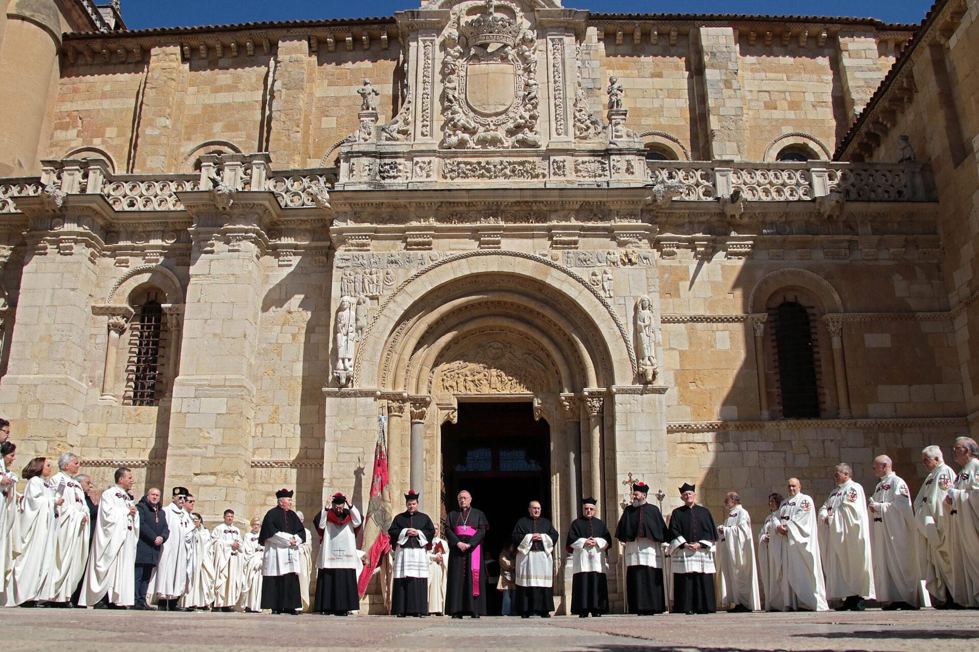 El alcalde de León, José Antonio Diez, y la concejala de Comercio, Consumo y Fiestas, Camino Orejas, encabezaron este martes la delegación municipal en el encuentro con los representantes del Cabildo de la Real Colegiata de San Isidoro para preparar la ceremonia de Las Cabezadas, que se celebra el domingo 26.