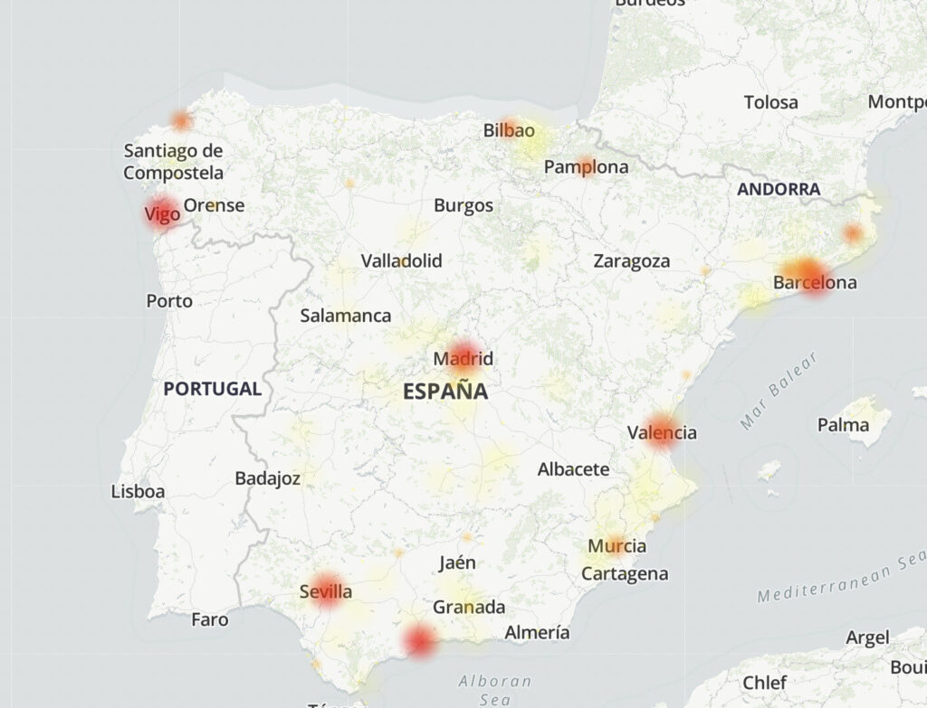 Las incidencias aparecen reflejadas en el mapa de fallos de Downdetector, con picos de avisos en varias ciudades de España, incluida la capital leonesa.
