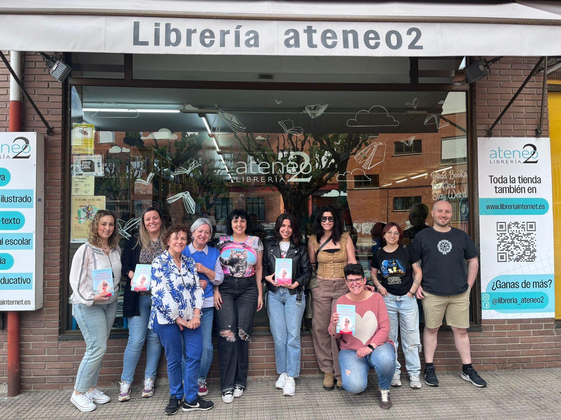 La librería Ateneo 2, situada en la calle Daoíz y Velarde, 56, se convirtió este sábado en el punto de encuentro de los integrantes del club de lectura Tribu de Libros. En esta ocasión, la cita contó con una invitada de excepción: la escritora leonesa Carmen Arteaga, quien acompañó a los lectores a partir de las 17:30 horas para desgranar los detalles de su novela ‘Cuando el mundo sea más grande’ (Ediciones B).
