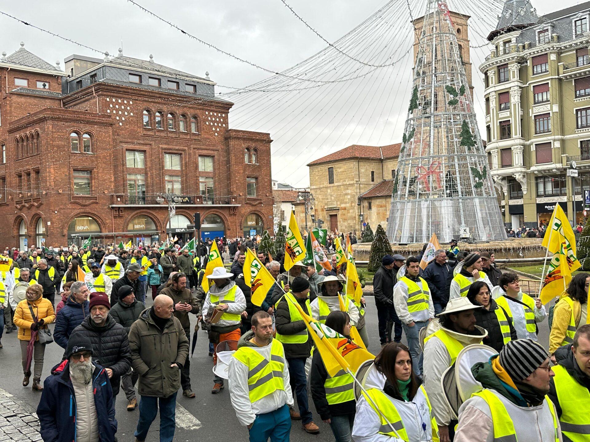 Alrededor de 400 tractores y otros cientos de personas a pie recorren León para trasladar sus protestas. “Hoy es una jornada de reivindicación, un día importante. Queremos hacer reflexionar a la clase política y las administraciones sobre los problemas del sector y exigir soluciones”, señaló el secretario general de Asaja, José Antonio Turrado, quien explicó que uno de los problemas más acuciantes es la relación con terceros países, con un acuerdo entre la Unión Europea y Mercosur que les perjudica.