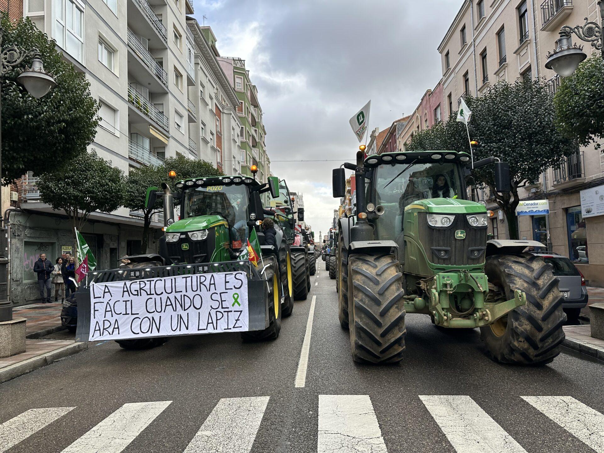 Alrededor de 400 tractores y otros cientos de personas a pie recorren León para trasladar sus protestas. “Hoy es una jornada de reivindicación, un día importante. Queremos hacer reflexionar a la clase política y las administraciones sobre los problemas del sector y exigir soluciones”, señaló el secretario general de Asaja, José Antonio Turrado, quien explicó que uno de los problemas más acuciantes es la relación con terceros países, con un acuerdo entre la Unión Europea y Mercosur que les perjudica.