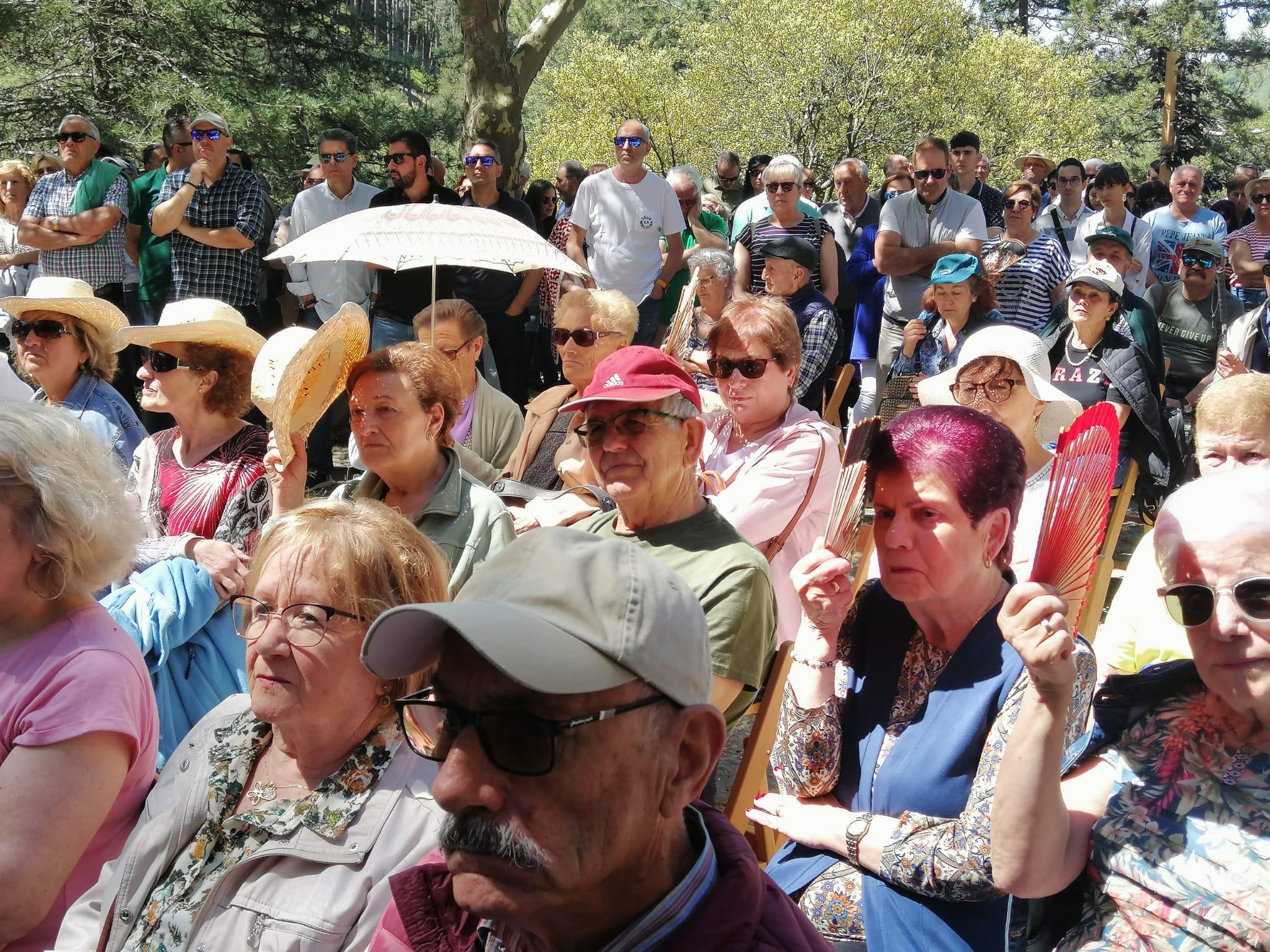 A partir de ahí, se ha emprendido camino por la senda forestal, ardua y empinada aunque perfectamente asfaltada y salpicada de bancos para recuperar el aliento, entre pinos en mitad del bosque, hasta llegar a lo más alto: la ermita de Peñacorada, donde descansa el santo el resto del año. Una vez que todos los romeros han llegado a la ermita, es hora de recuperar el resuello y prepararse para la eucaristía, a cargo del obispo de León, Luis Ángel de las Heras.
