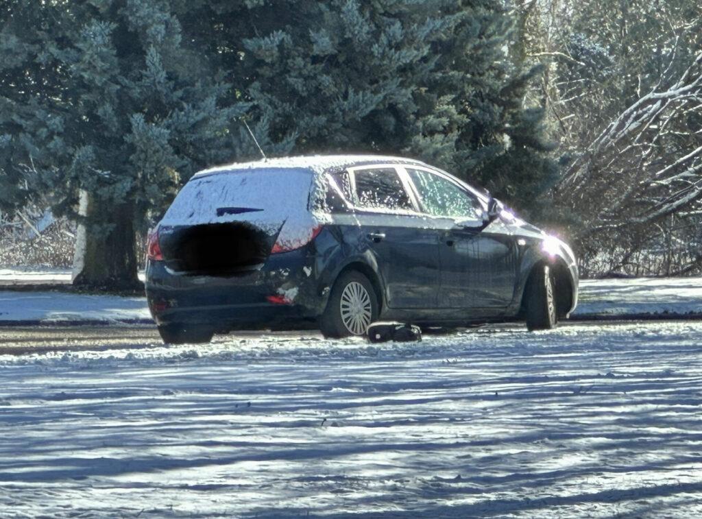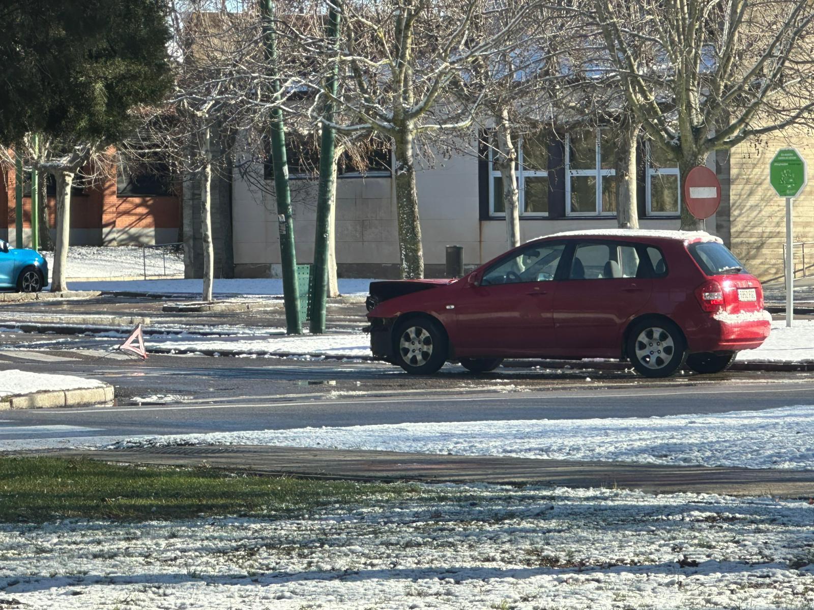 Tras la colisión de los dos turismos, los conductores permanecían a la espera de la llegada de la grúa para retirar los coches, en un entorno de la Universidad de León aún con restos de nieve en la calzada y las zonas verdes.