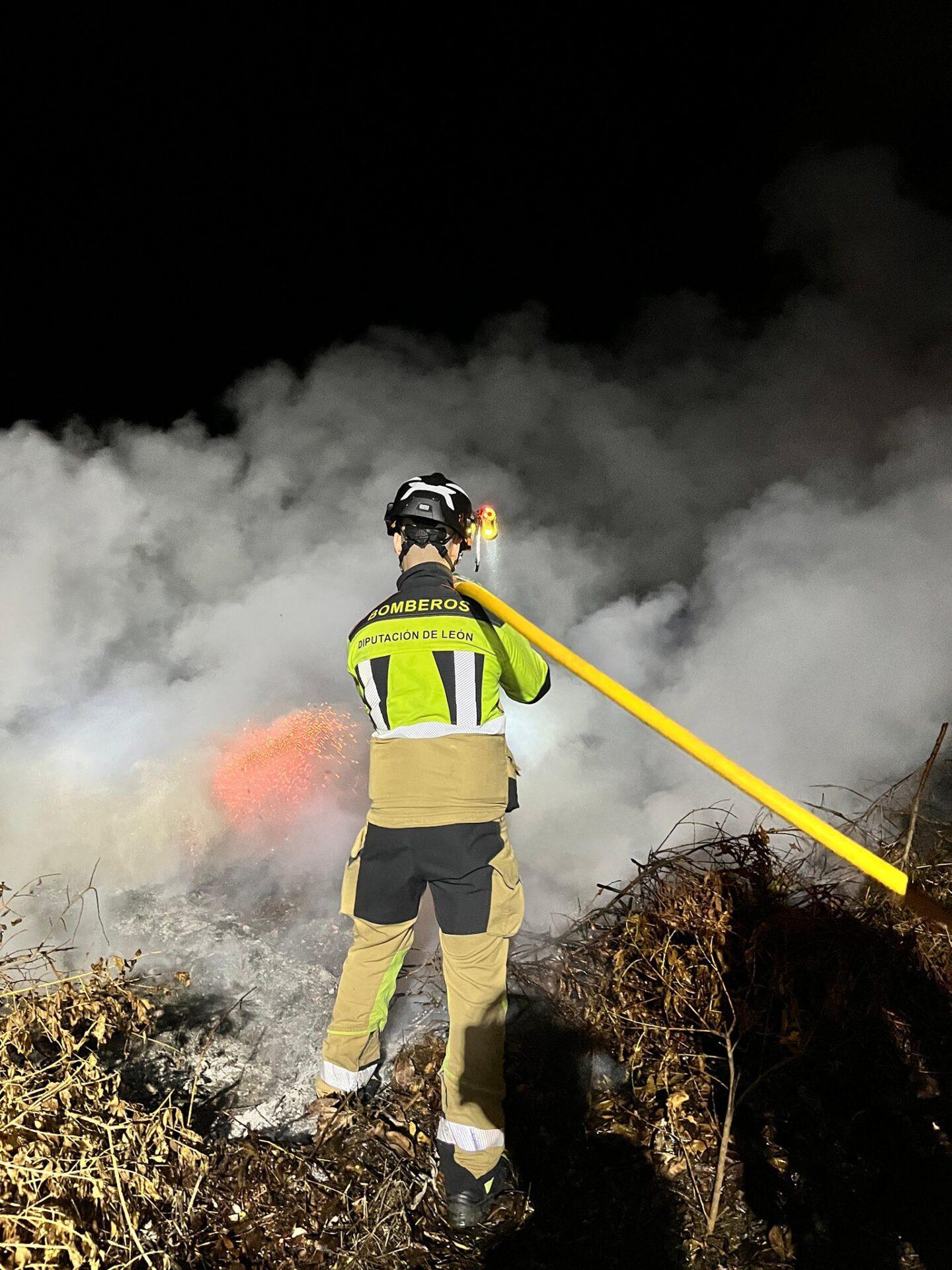 Los bomberos del Servicio de Prevención, Extinción de Incendios y Salvamento (SEPEIS) de la Diputación de León, con base en el parque de Valencia de Don Juan, intervinieron anoche en un incendio urbano declarado en una zona de matorral y restos vegetales situada entre las localidades de Villamol y Castellanos de Cea.