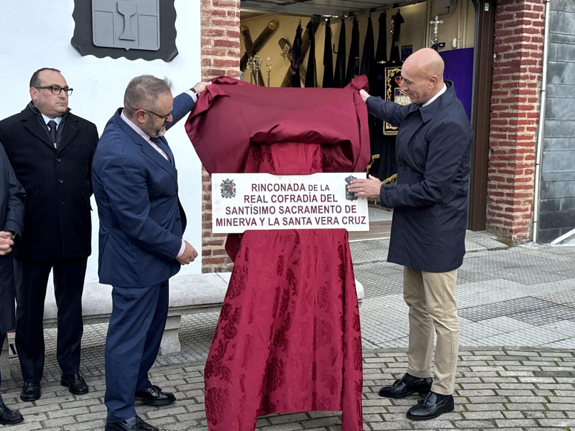 El Pleno del pasado 31 de mayo aprobó por unanimidad el cambio de denominación de este punto de ciudad, para llamarse Rinconada de la Real Cofradía del Santísimo Sacramento de Minerva y la Santa Vera Cruz, un espacio muy significativo para la cofradía. “En una entrada de la muralla medieval, tan importante para ellos. Su rincón en la ciudad”, ha señalado el alcalde. “Los textos oficiales recogerán la historia de este cambio de denominación pero no se centrarán en la emoción y el orgullo de los hermanos que pidieron el cambio de nombre mostrando su total compromiso con la cofradía a la que representan y, lo que es más importante, con la que comparten tanto”, ha añadido.
