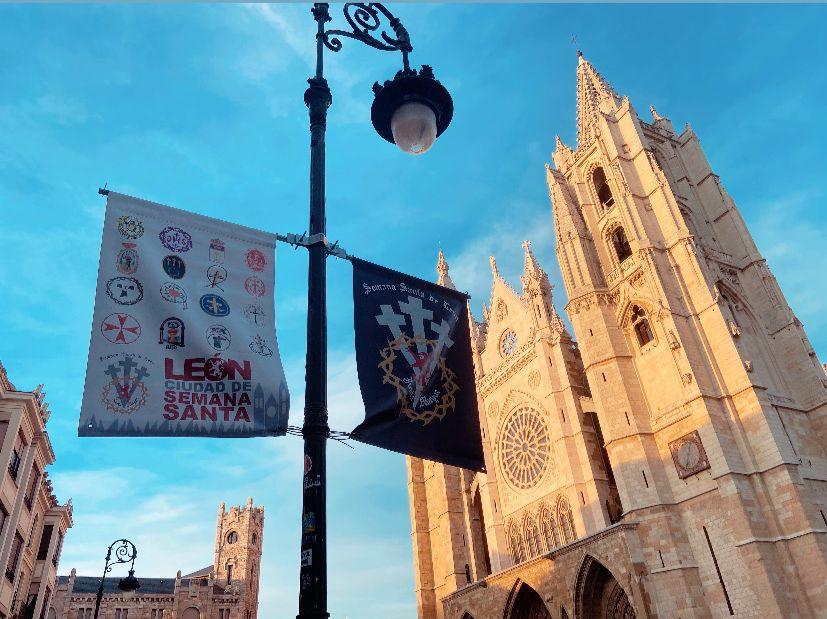 De momento, a la vista lo que ya se puede ver son las banderolas que avisan de que la Semana Santa ya está cerca, bajo el lema: “León, ciudad de Semana Santa”. Esta semana, operarios del Ayuntamiento de León procedían a su colocación en el centro de la ciudad, en lugares tan representativos como la calle Ancha y la catedral.