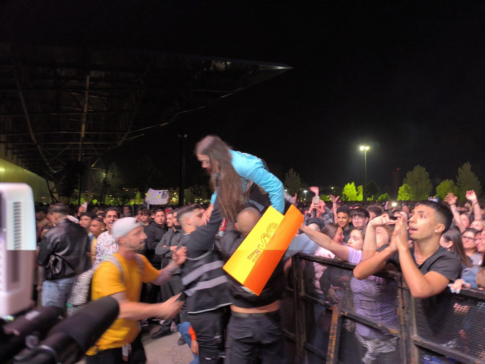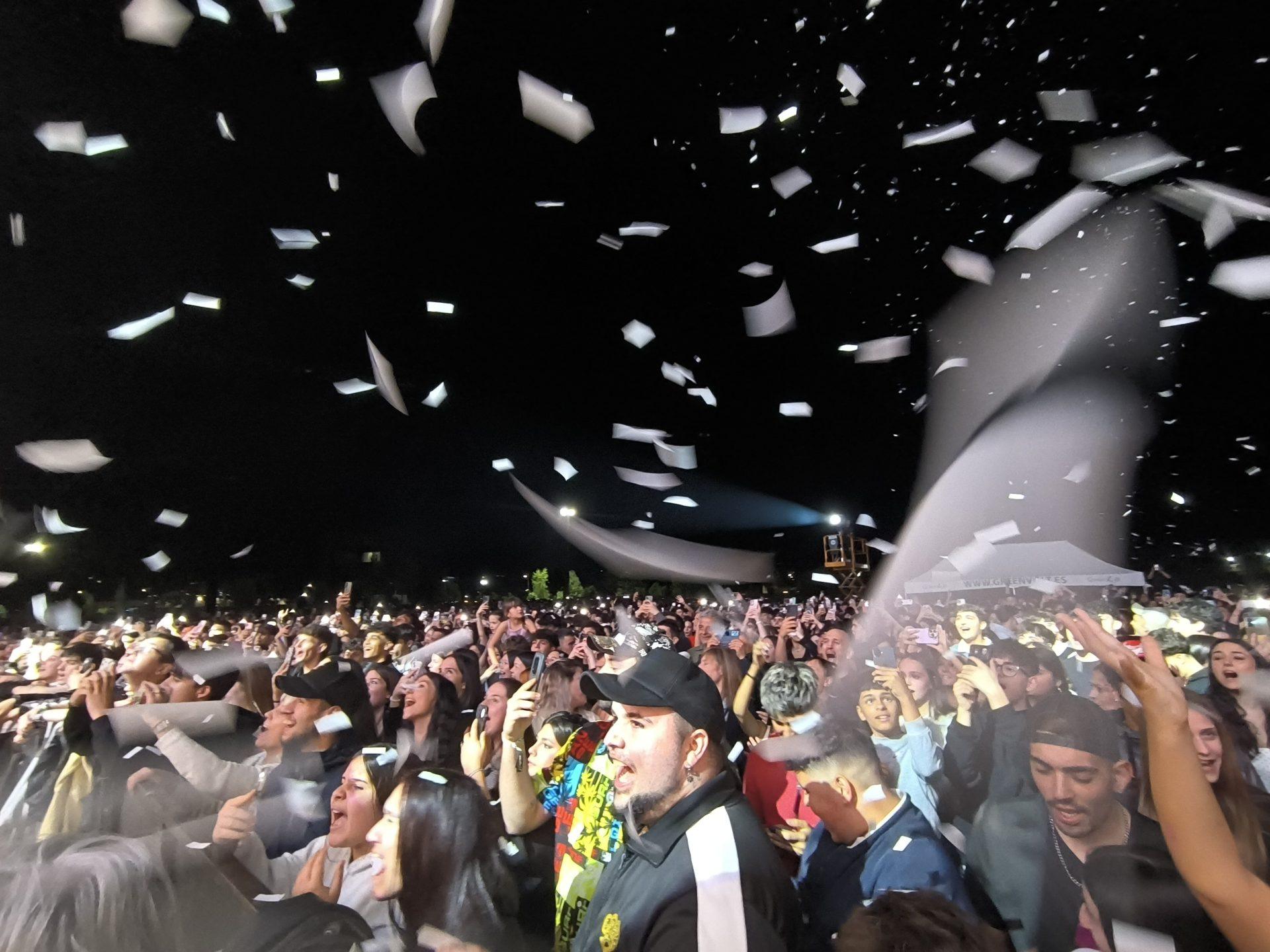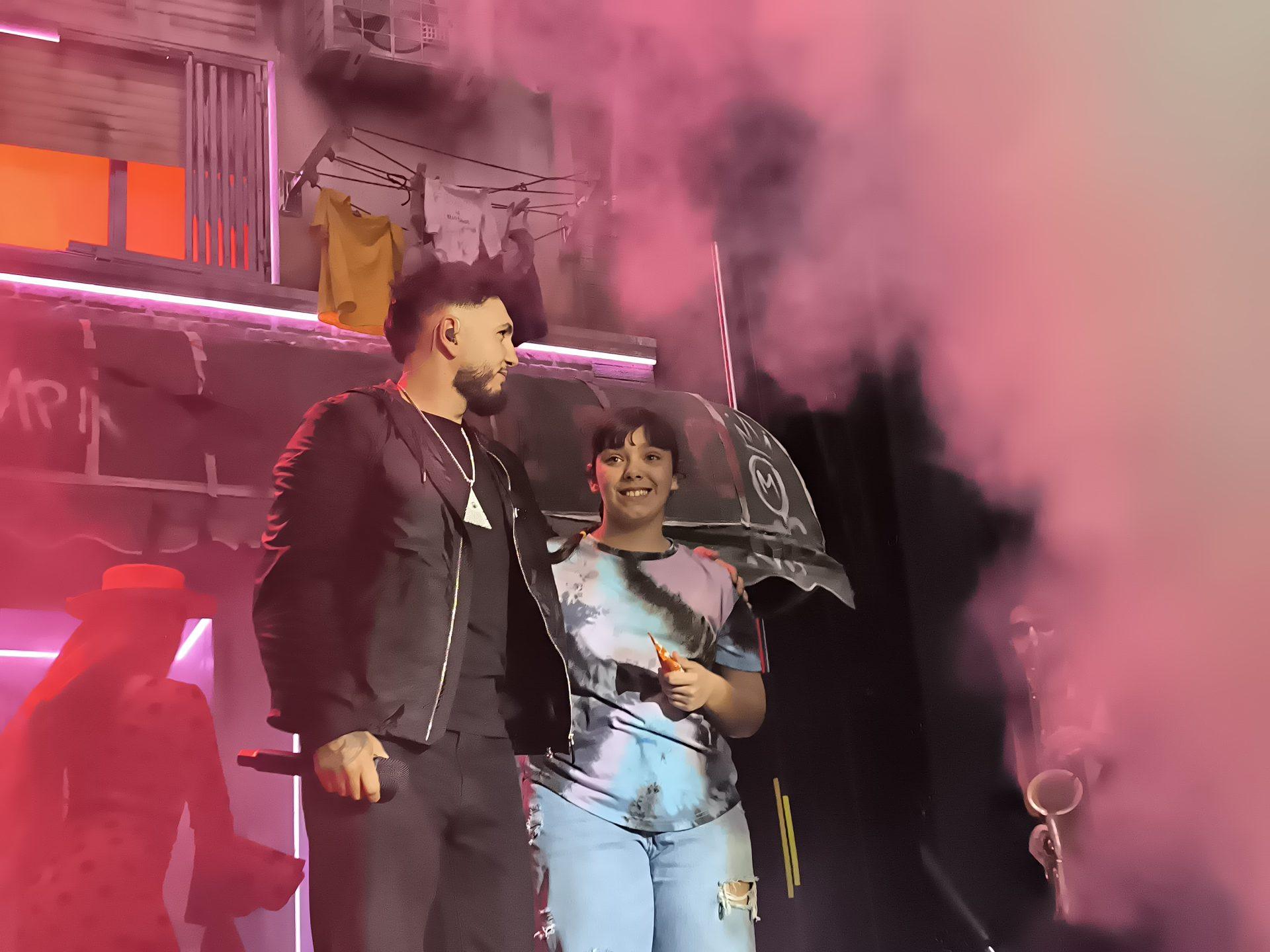 No todo fue celebración. El concierto vivió su instante más solemne cuando se guardó un riguroso minuto de silencio en memoria del padre del influencer de humor Champimuros, amigo cercano del cantante, presente también en el evento.