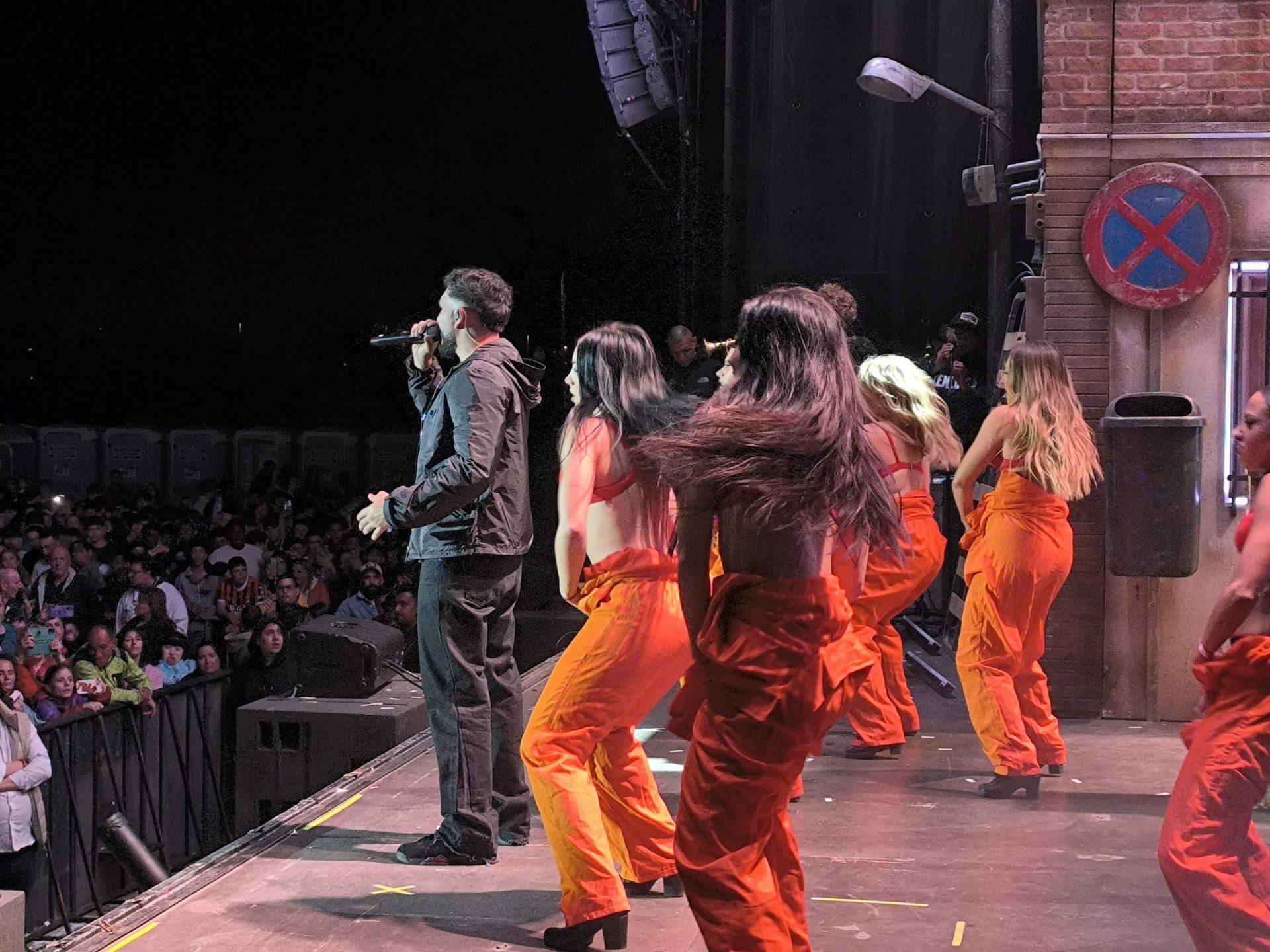 Además, llamó la atención el amplio séquito y personal de seguridad y asistencia que acompaña al artista en cada una de sus intervenciones.