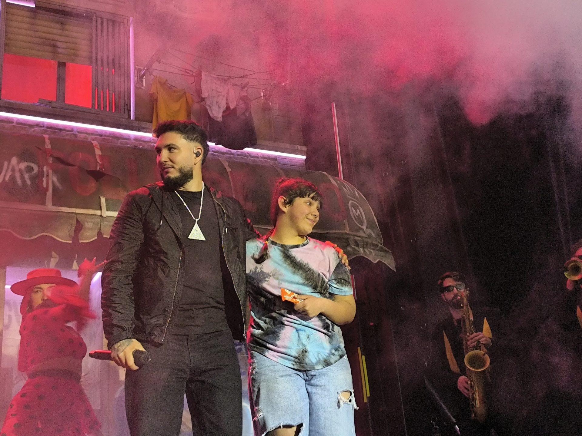 Fiel a su estilo cercano, subió a varios fans al escenario para participar activamente en el baile de su reciente éxito ‘Sevillanas‘. Al concierto se sumaron rostros conocidos de León, uno de ellos, en el escenario, el boxeador leonés Antonio Barrul.