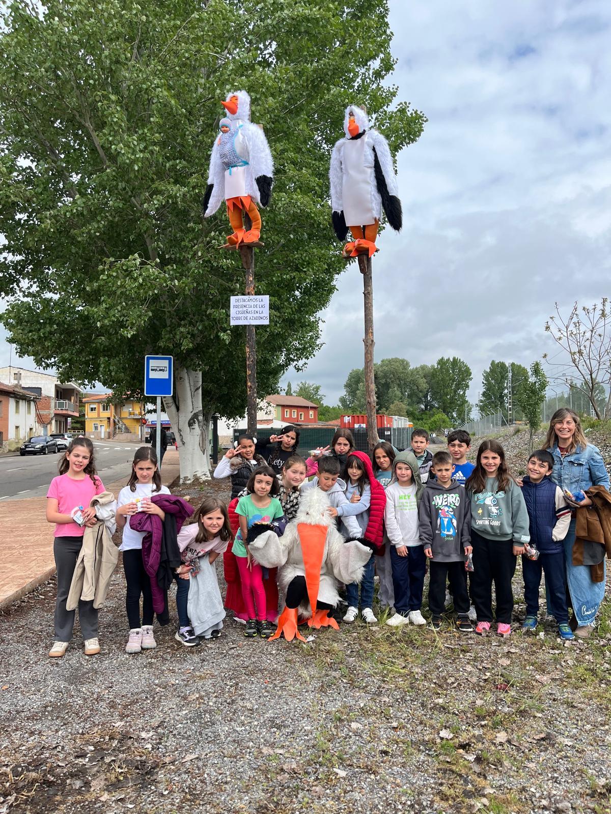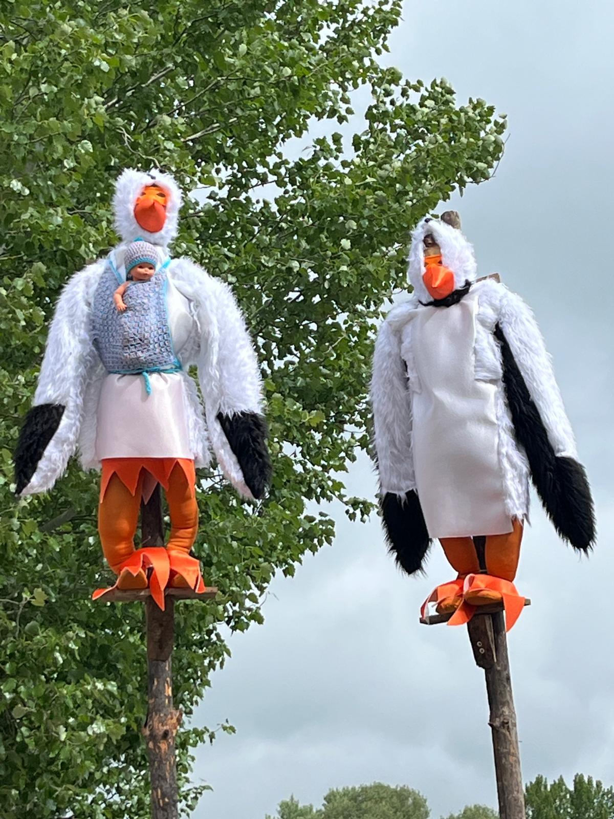 Azadinos: Ha optado por la naturaleza con “doña cigüeña y don cigüeño”, figuras que ya presiden la entrada del pueblo en la calle La Puente.