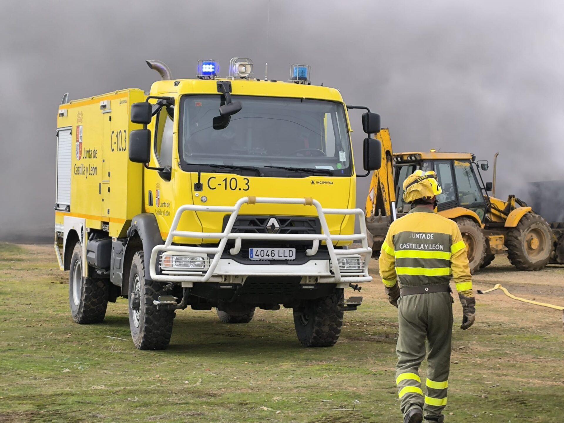 Una veintena de medios aéreos y terrestres de la Junta de Castilla y León trabajan en estos momentos en la extinción de un incendio forestal registrado en la localidad leonesa de Vega de Espinareda perteneciente a la comarca del Bierzo, en la provincia de León.
