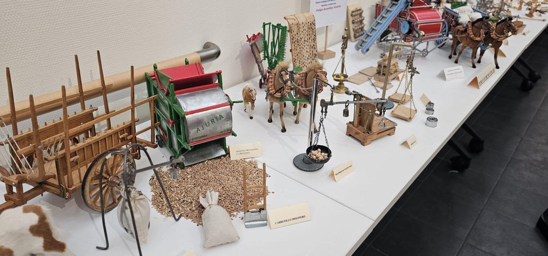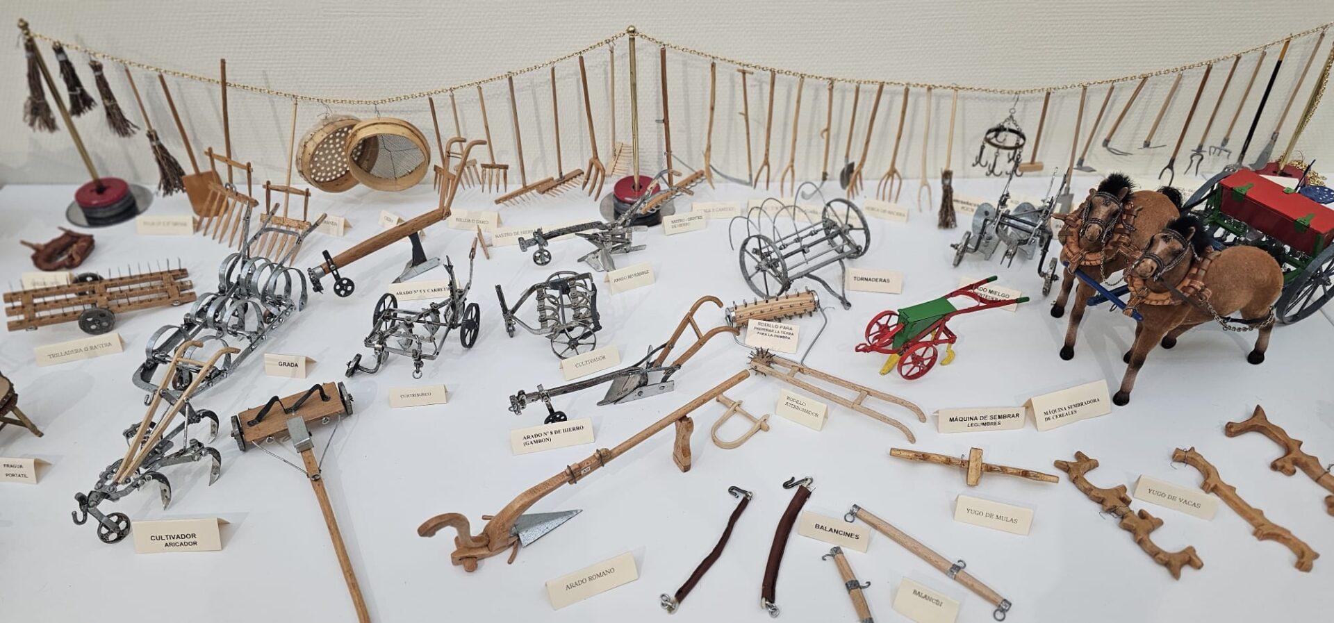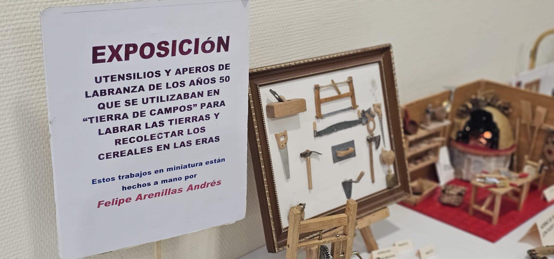 La exhibición es un recorrido visual por la vida en Tierra de Campos, recreando con detalle herramientas, utensilios y aperos de labranza que marcaron el trabajo en el campo desde el siglo XIX hasta mediados del XX. Entre las piezas, hechas totalmente a mano, se pueden observar miniaturas de sierras, martillos, arados y construcciones tradicionales que servían para labrar la tierra y recolectar el cereal en las eras y trabajar con los animales.