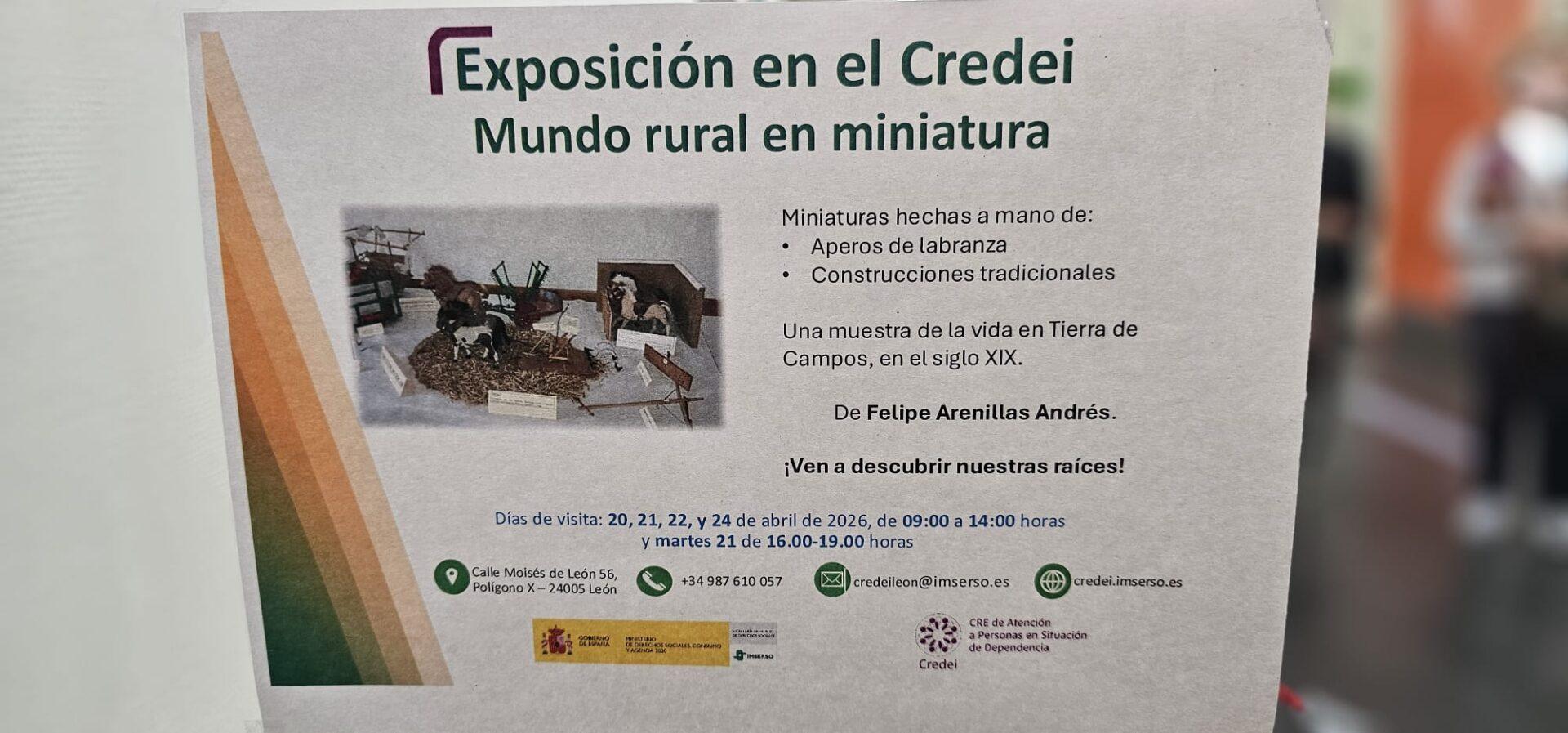 El Centro de Referencia Estatal para la Atención a Personas en Situación de Dependencia de León —conocido popularmente como Credei— acoge estos días una muestra única y original que rinde homenaje a las tradiciones agrícolas de nuestra provincia. Bajo el título “Mundo rural en miniatura”, la exposición presenta el minucioso trabajo hecho a mano por el artesano Felipe Arenillas Andrés. Un laborioso trabajo que comenzó hace años con su gran amigo, ya fallecido, Jaime Rodríguez, y que ahora todos los visitantes puedes disfrutar sin perderse ningún minucioso detalle.