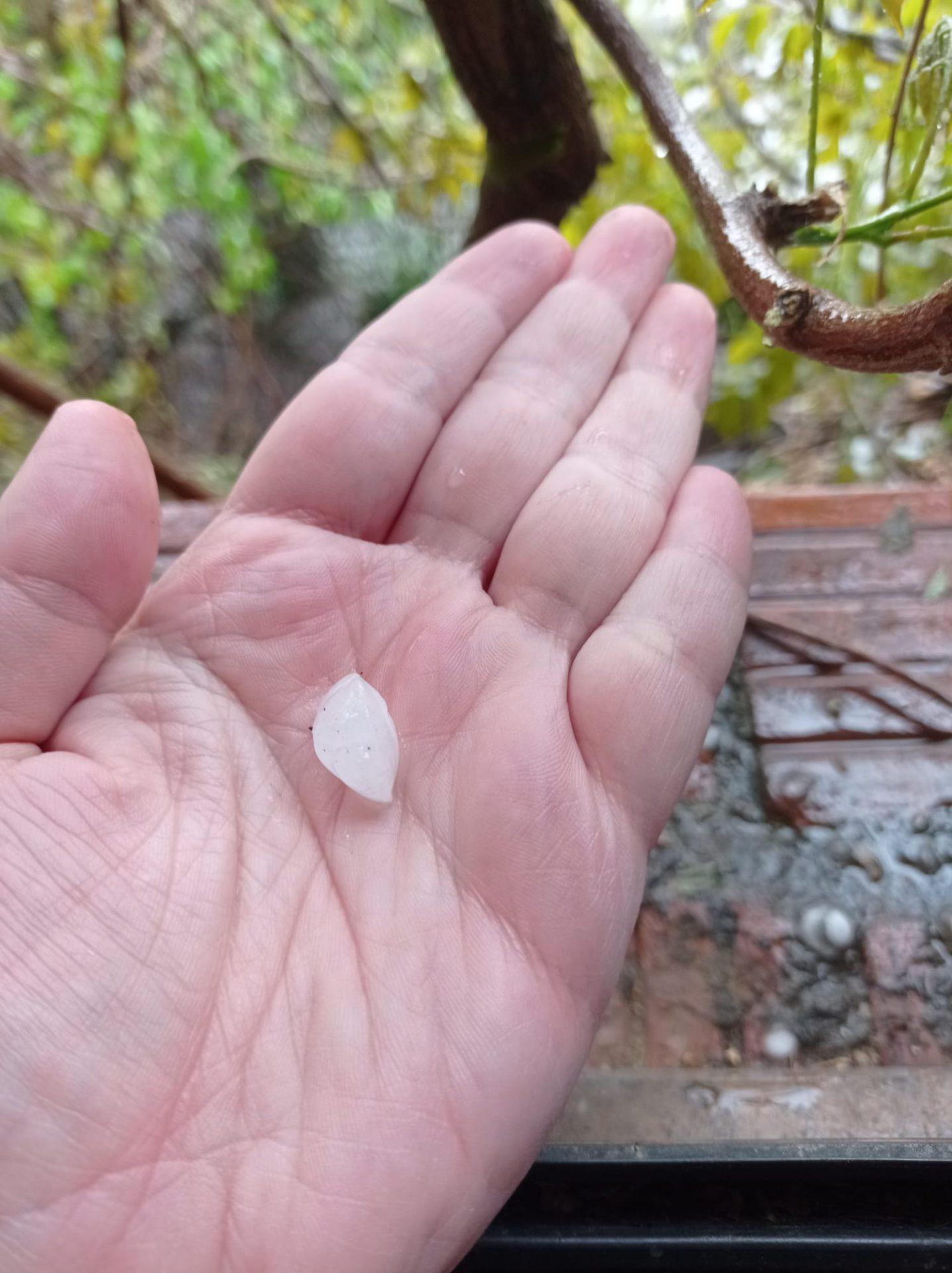 - El grueso granizado ha tenido de blanco la zona, dando paso a la inestabilidad que, según las predicciones de la Aemet, se convertirán en lluvias en la capital