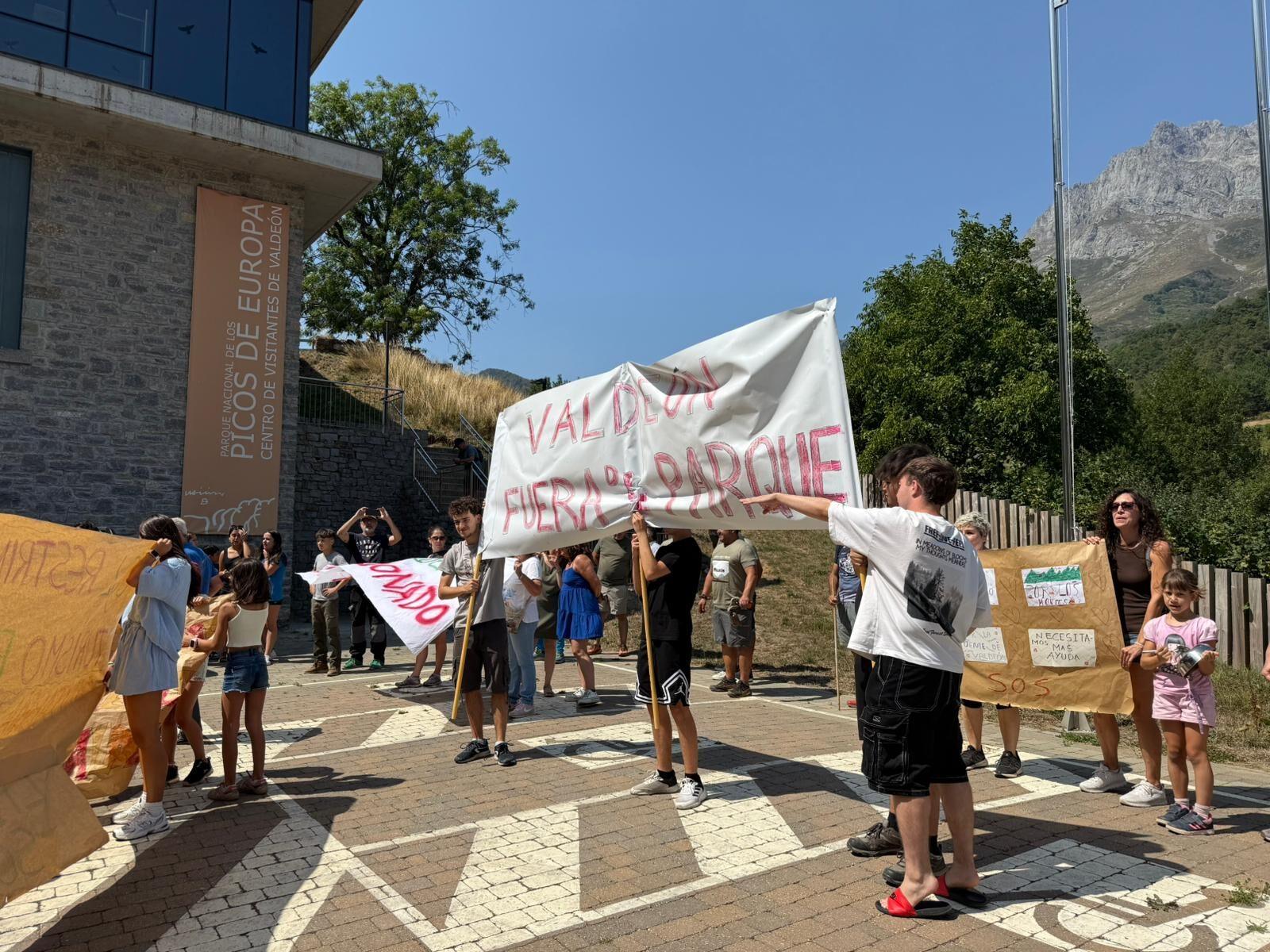La protesta, que tuvo lugar a las puertas del Centro de Visitantes de Posada de Valdeón, coincidió con una reunión de representantes del Parque Nacional. Con lemas como “Valdeón libre” o “más desbroces y menos restricciones”, los manifestantes mostraron su malestar por unas medidas que consideran un “mazazo” para un municipio que depende en más de un 80% del turismo.