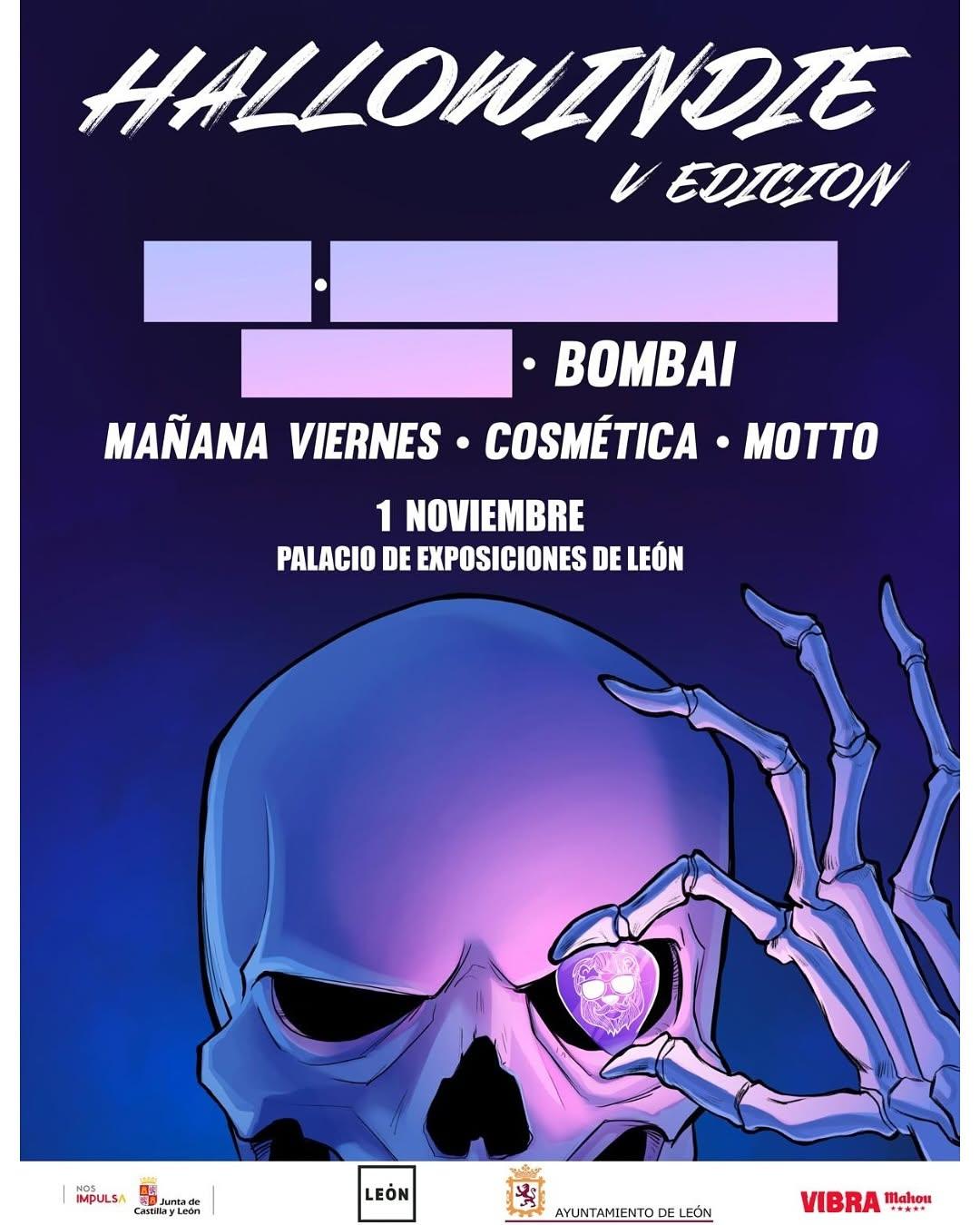 El cartel del festival ‘Hallowindie’ que se celebrará el próximo 1 de noviembre en el Palacio de Exposiciones de León comienza a tomar forma. Esta semana, los organizadores han dado a conocer a los primeras cuatro bandas que estarán presentes en el escenario: Bombai, Mañana Viernes, Cosmética y Motto.