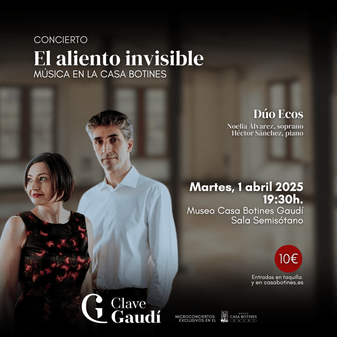 El Museo Casa Botines Gaudí continúa con su ciclo de microconciertos ‘Clave Gaudí’ en el que se fusionan la música en vivo con la obra arquitectónica de Gaudí. En esta ocasión el martes 1 de abril a las 19:30 horas el Dúo Ecos ofrecerá una mirada a la Casa Botines a través de la música. Las entradas ya están a la venta en la taquilla y en la web del Museo.