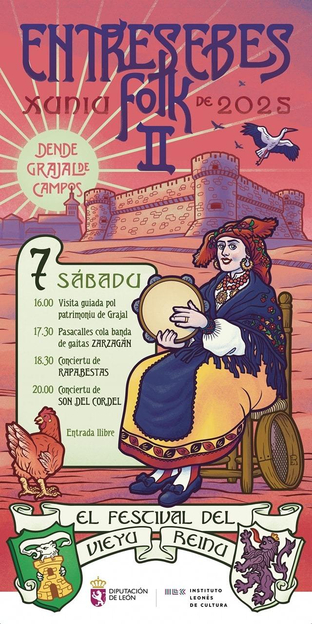 El municipio de Grajal de Campos revela los detalles de la segunda edición de su festival “Entresebes Folk”. El evento, fijado para el sábado 7 de junio de 2025, promete una inmersión en la cultura tradicional y la música folk, con un programa que incluye visitas guiadas y conciertos de entrada gratuita. La jornada iniciará … Sigue leyendo Grajal de Campos anuncia la segunda edición de “Entresebes Folk”