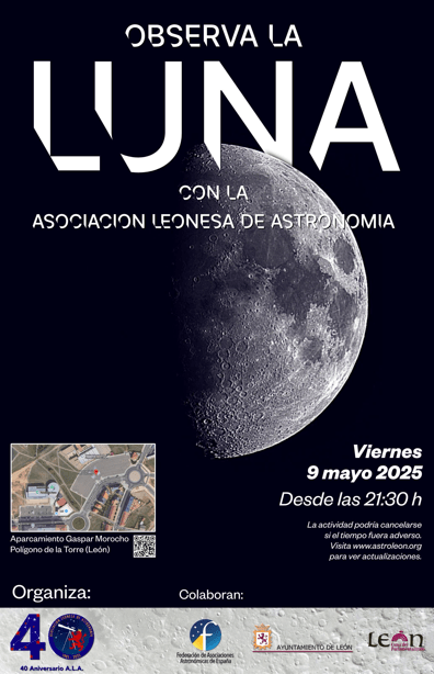 ICAL. La Asociación Leonesa de Astronomía continúa su programa de divulgación astronómica con motivo del 40 aniversario de su fundación y el 25 aniversario de la creación del Observatorio Astronómico Municipal Pedro Duque y organiza mañana una sesión de observación de la Luna Gibosa Creciente, con la colaboración de la Concejalía de Acción y Promoción Cultural del Ayuntamiento de León.