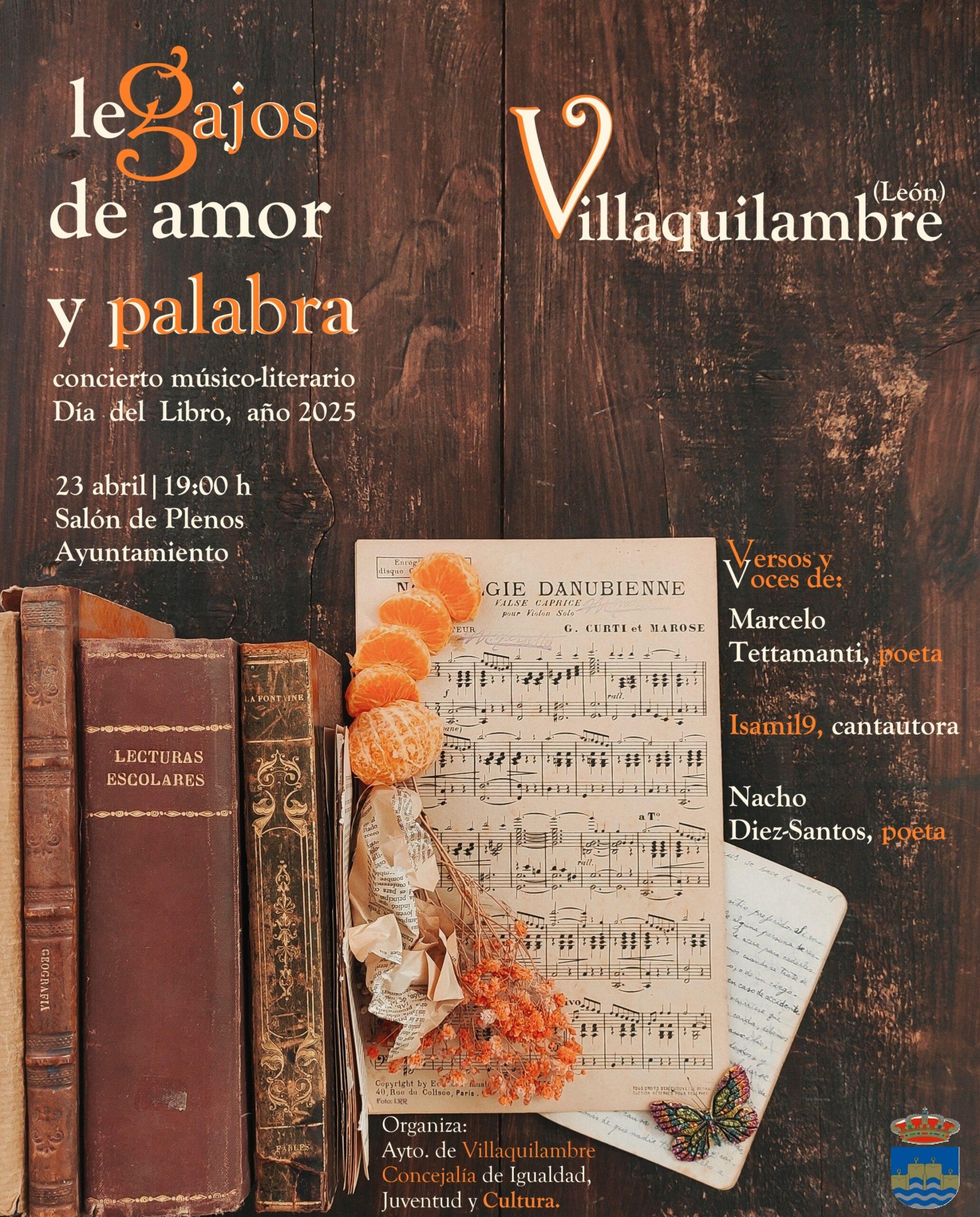 El alumnado de Red-prendiendo, los colegios y los clubes de lectura harán una lectura del manifiesto por la lectura de Irene Vallejo y cuentos de Antonio Pereira. El concierto músico literario ‘Legajos de amor y palabra’ a cargo de Isamil9, Marcelo Tettamanti y Nacho Díez-Santos, cierran la celebración del día del del libro.