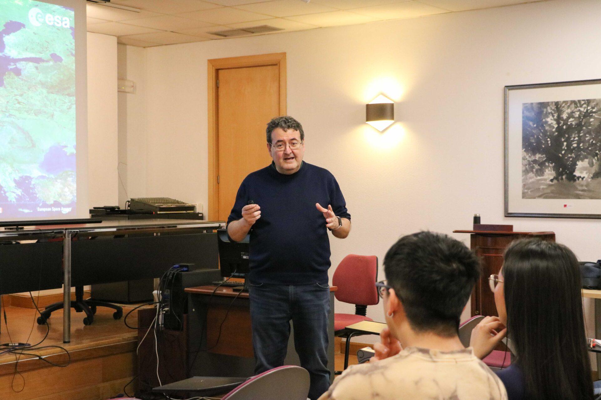La charla, titulada ‘El Programa de Observación de la Tierra de la Agencia Espacial Europea: Aplicaciones a la prevención de riesgos naturales y gestión de grandes desastres’, puso de relieve el papel creciente de los satélites en la gestión de emergencias.