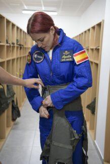 A continuación, recibió la explicación del equipo personal de vuelo por parte del capitán Marín, y pasó por el reconocimiento médico pertinente antes del primer vuelo, un reconocimiento que dejó al descubierto la emoción de nuestra astronauta antes del despegue.