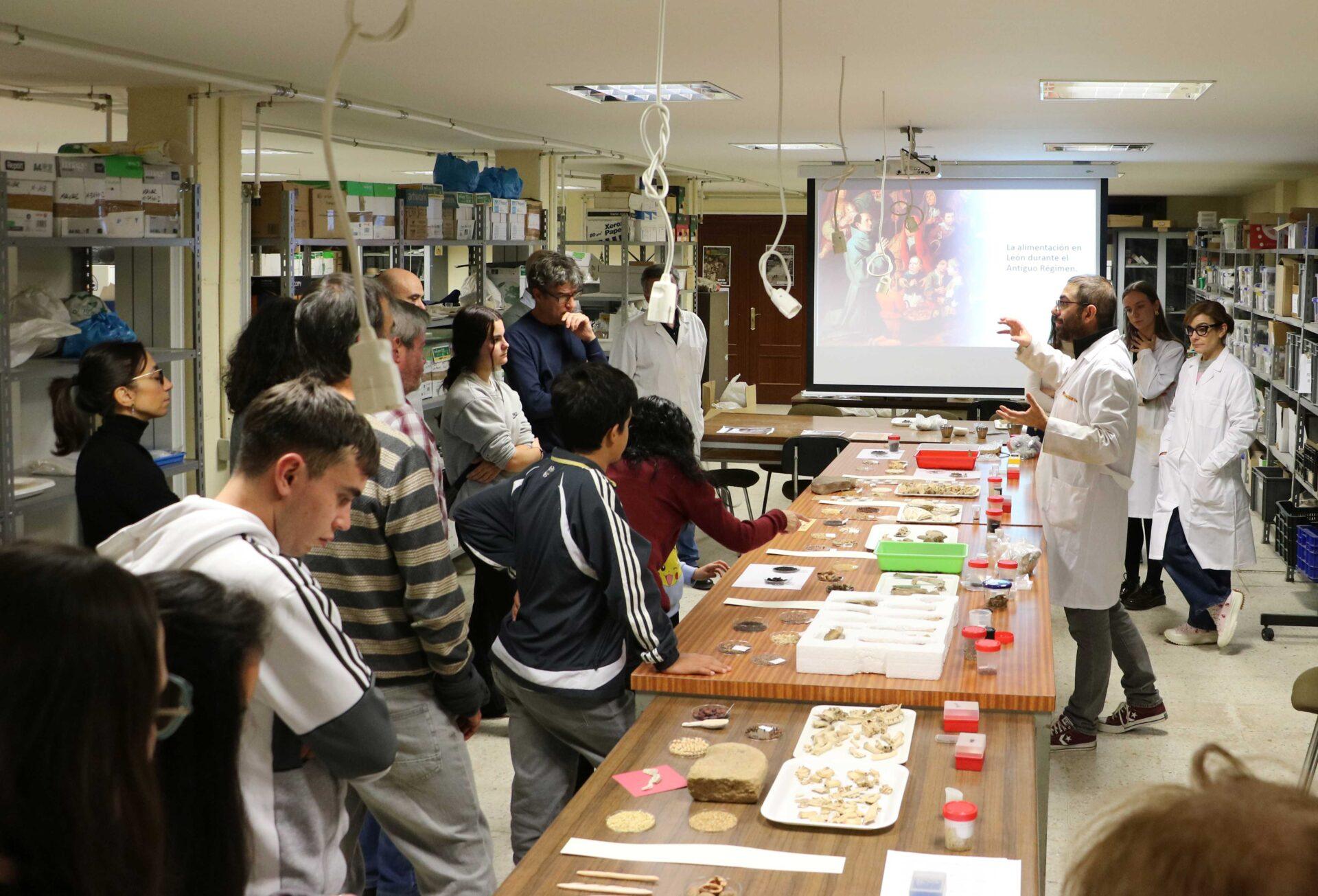 Una jornada con una gran participación de público en la que el laboratorio de Arqueología de la ULE también ha abierto las puertas para contar los ‘Hitos en la historia de la alimentación humana’ a través de un recorrido divulgativo de la dieta y los hábitos alimentarios a lo largo del tiempo.