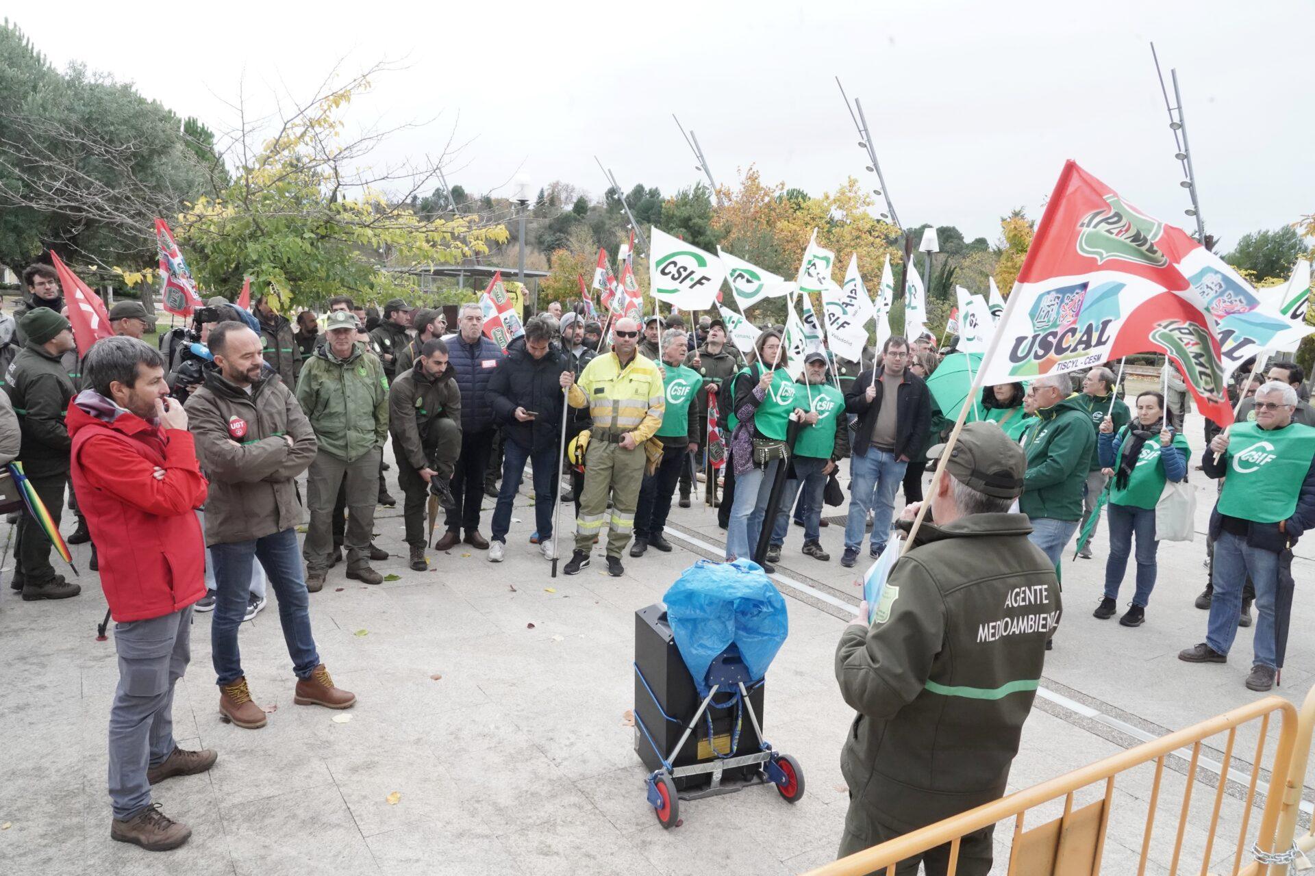 Coincidiendo con la presentación en las Cortes de Castilla y León del proyecto de presupuesto de la Consejería del Medio Ambiente y Ordenación del Territorio por parte del consejero Juan Carlos Suárez-Quiñones, los sindicatos CSIF, CCOO, UGT y TISCYL-USCAL se concentrado esta tarde a las puertas del Parlamento Autonómico. Allí han denunciado que la Junta siga adelante con su “decretazo” del operativo de incendios forestales cuando es un documento “que no aborda ninguno de los problemas estructurales del operativo de incendios y que supone un nuevo engaño a la ciudadanía”, según señalaron a Ical fuentes sindicales.