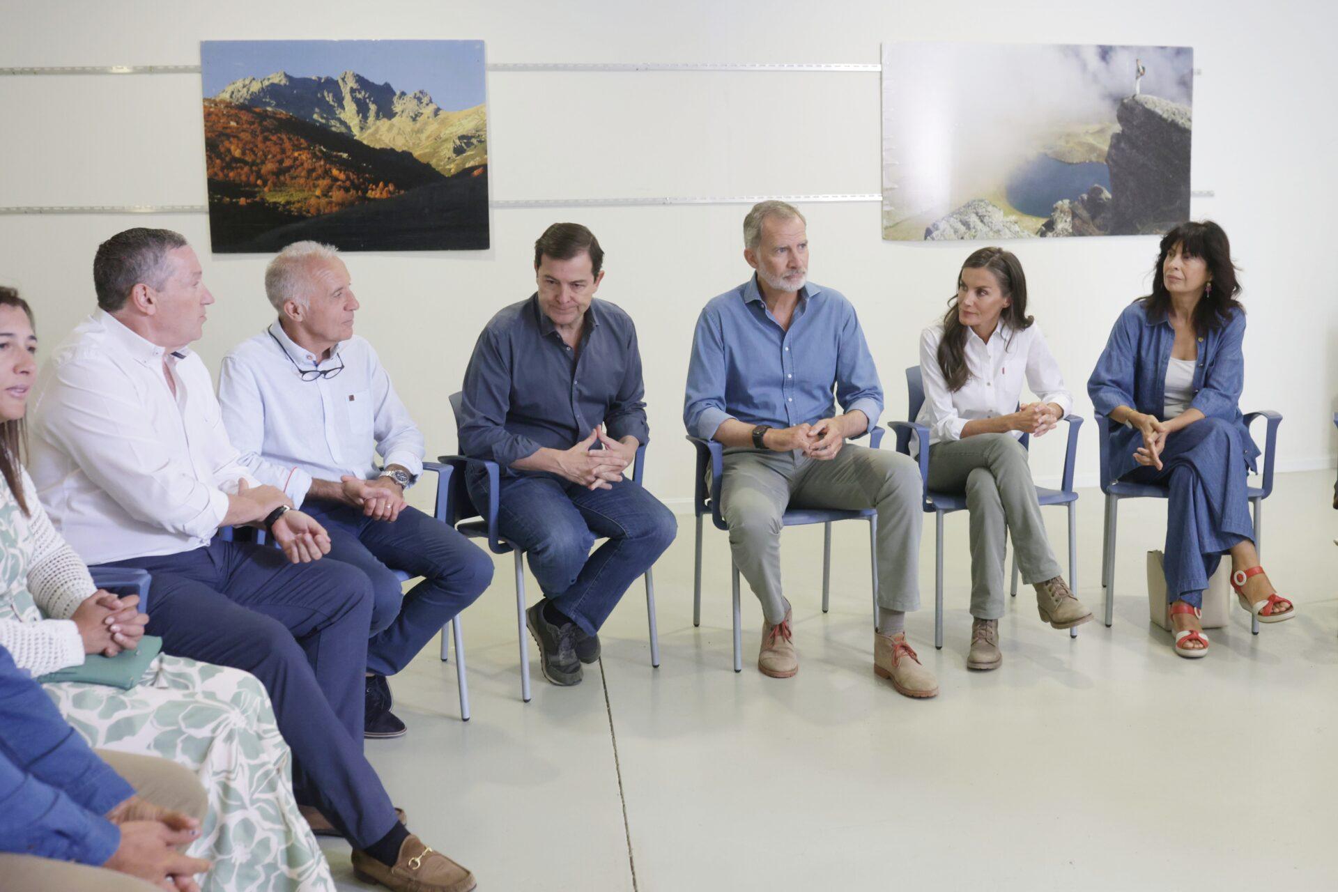 Después del breve encuentro en San Martín de Castañeda, los Reyes se desplazaron a la Casa del Parque Natural del Lago de Sanabria y Sierras Segundera y de Porto para reunirse con los alcaldes de municipios afectados por el fuego, concretamente, los de Trefacio, Porto, Escuredo, Doney de la Requejada, así como los regidores pedáneos de Vigo de Sanabria, San Martín de Castañeda, Ribadelago Viejo, Ribadelago Nuevo, Murias, Rábano de Sanabria y Barrio de Rábano. También intervinieron la consejera de Industria Comercio y Empleo, Leticia García, y el presidente de la Diputación de Zamora, Javier Faúndez.