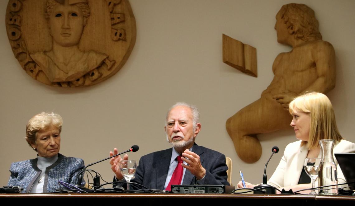 Por su parte la catedrática y miembro de la RAE, Ángeles Encinar, escritora, profesora y filóloga destacó “el magisterio de José María Merino en el género cuento y en todos los géneros porque ha escrito poesía, cuento, novela, ensayo, novela corta, pero, desde luego, tiene una faceta de cuentista que todo el mundo, críticos y lectores, reconocen como el gran maestro del cuento en la actualidad”. En cuanto a la antología expuso que recoge 40 cuentos, “26 que podríamos decir canónicos y 14 minicuentos, como a él le gusta decir con esta palabra, que en todos ellos sobresalen algunas de las facetas literarias que más marcan toda su obra”.