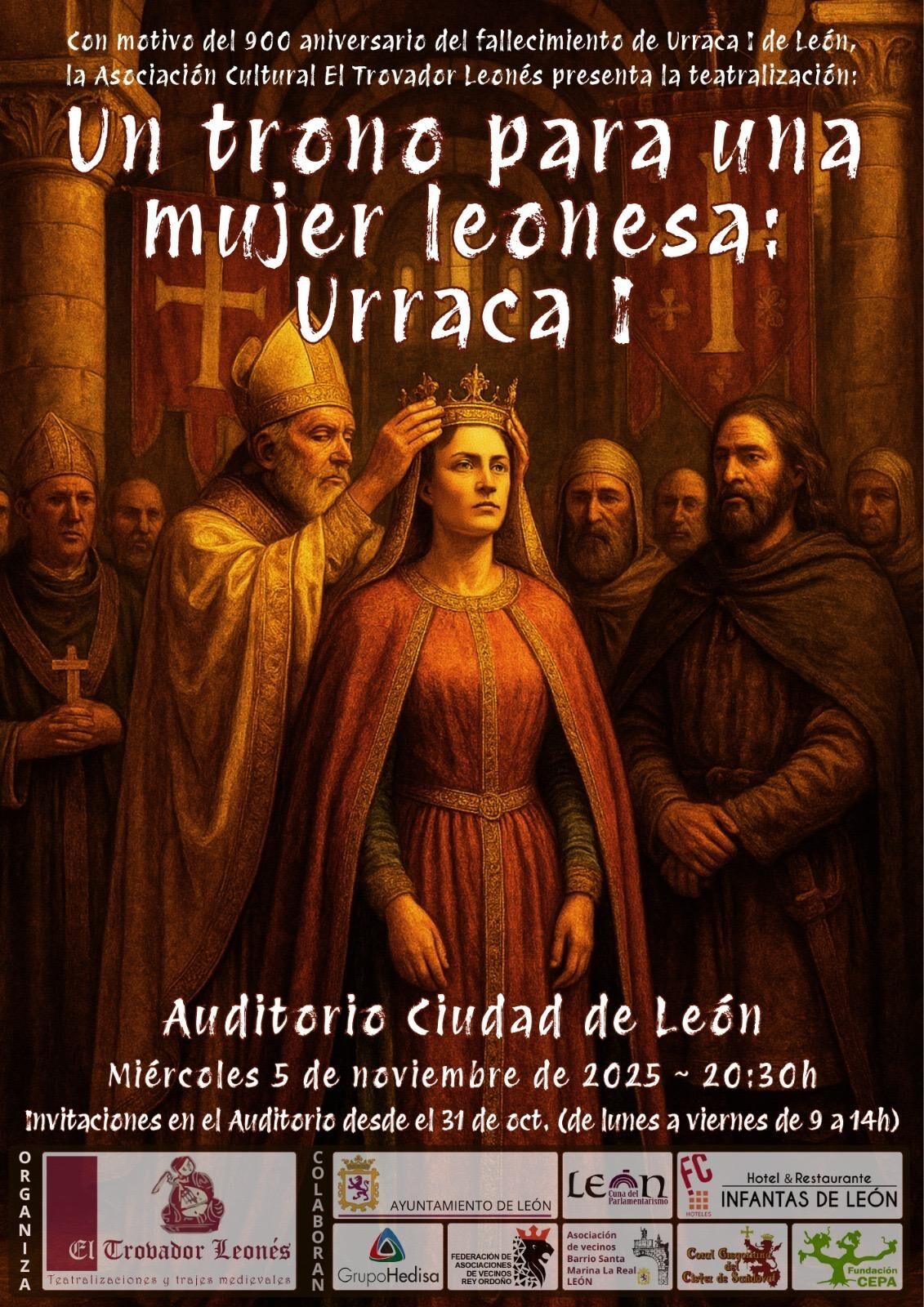 El evento conmemora la figura histórica de Urraca I, una de las reinas más relevantes de la historia del Reino de León. El cartel promocional, una impactante imagen que evoca un momento de coronación medieval, anticipa una puesta en escena de gran calado histórico y artístico.