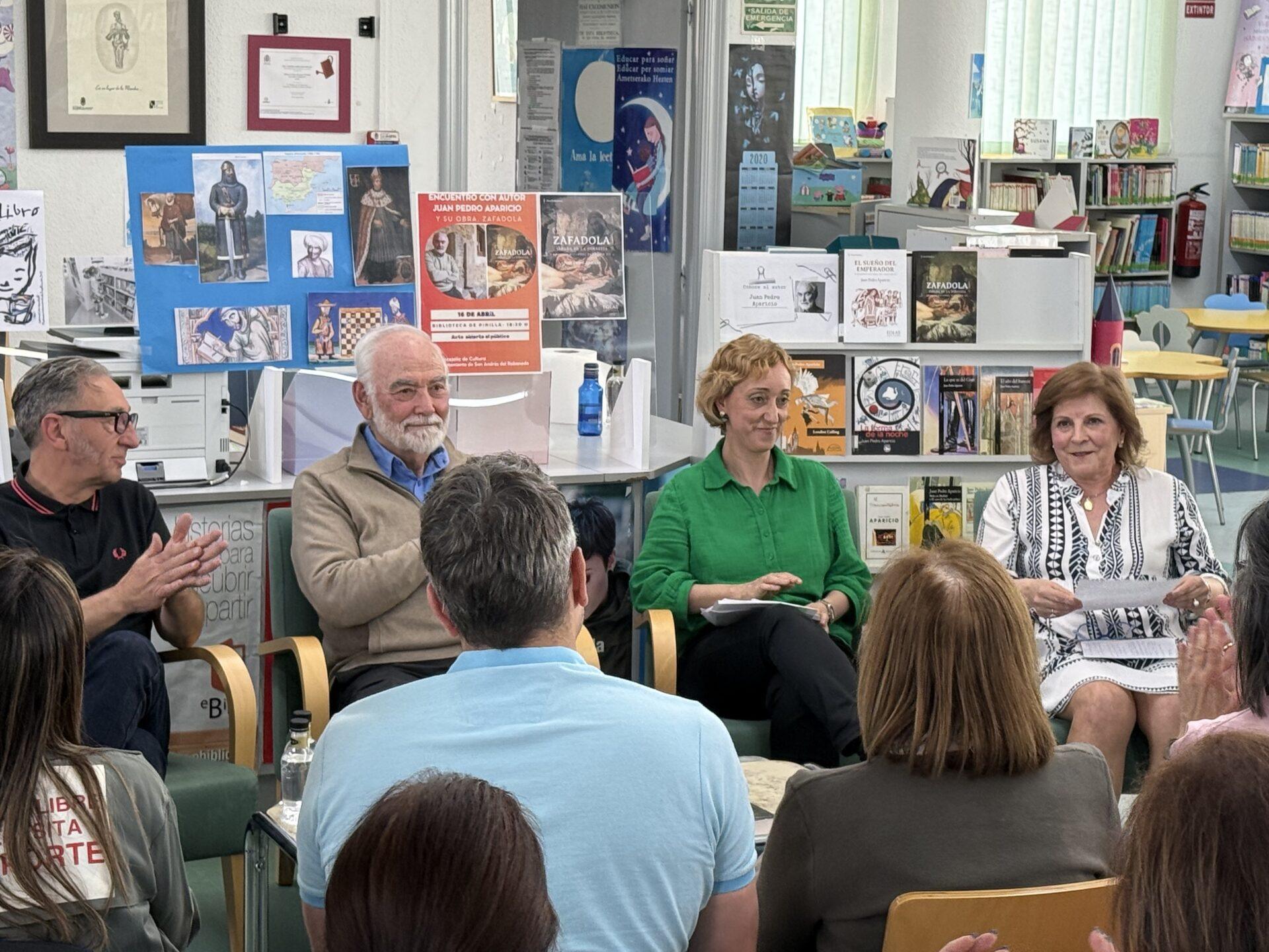 La Biblioteca de Pinilla ha acogido un encuentro literario con el escritor leonés Juan Pedro Aparicio, quien, este jueves por la tarde, ha presentado su obra Zafadola en una cita que ha contado con una gran acogida por parte del público, llenando el espacio disponible.