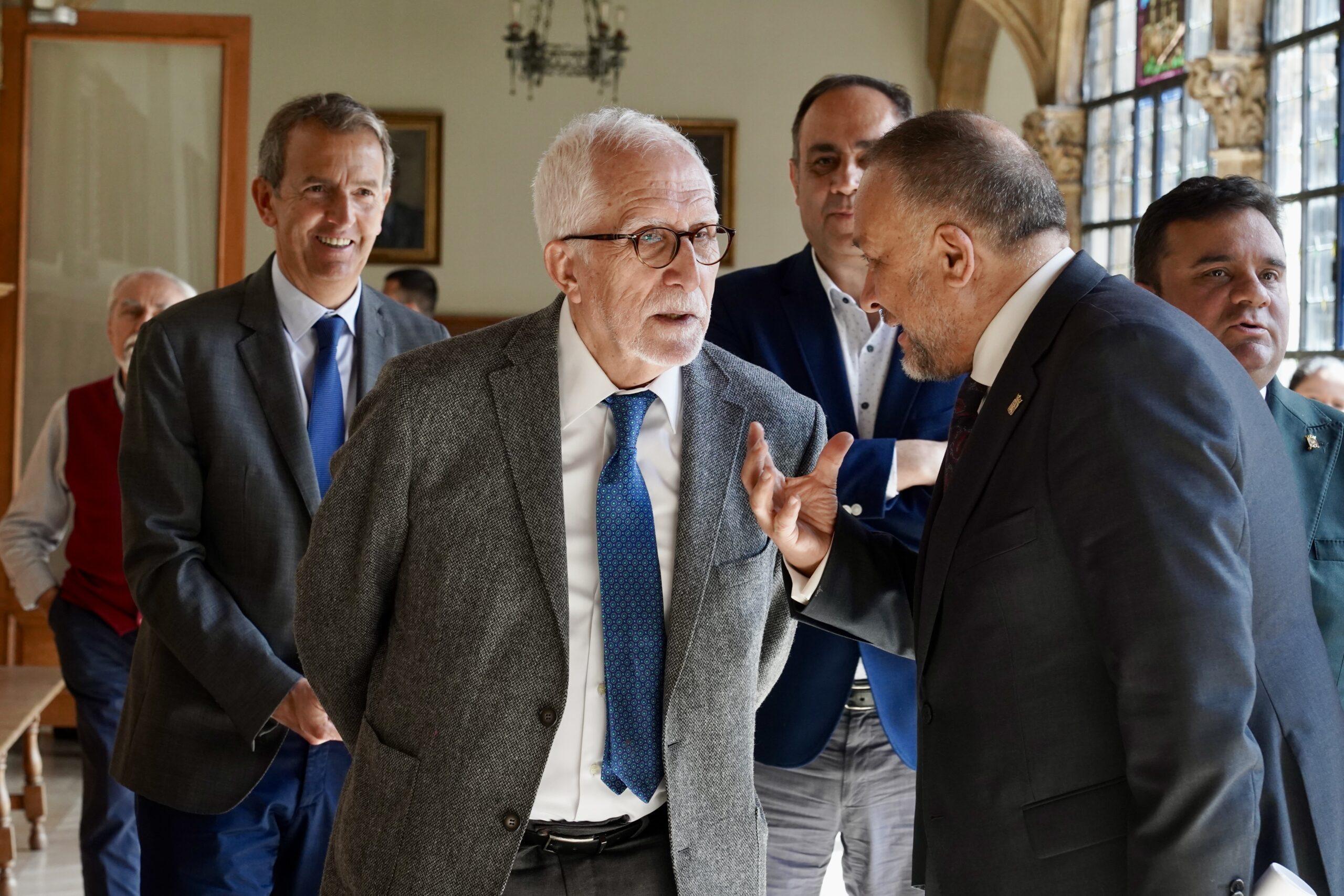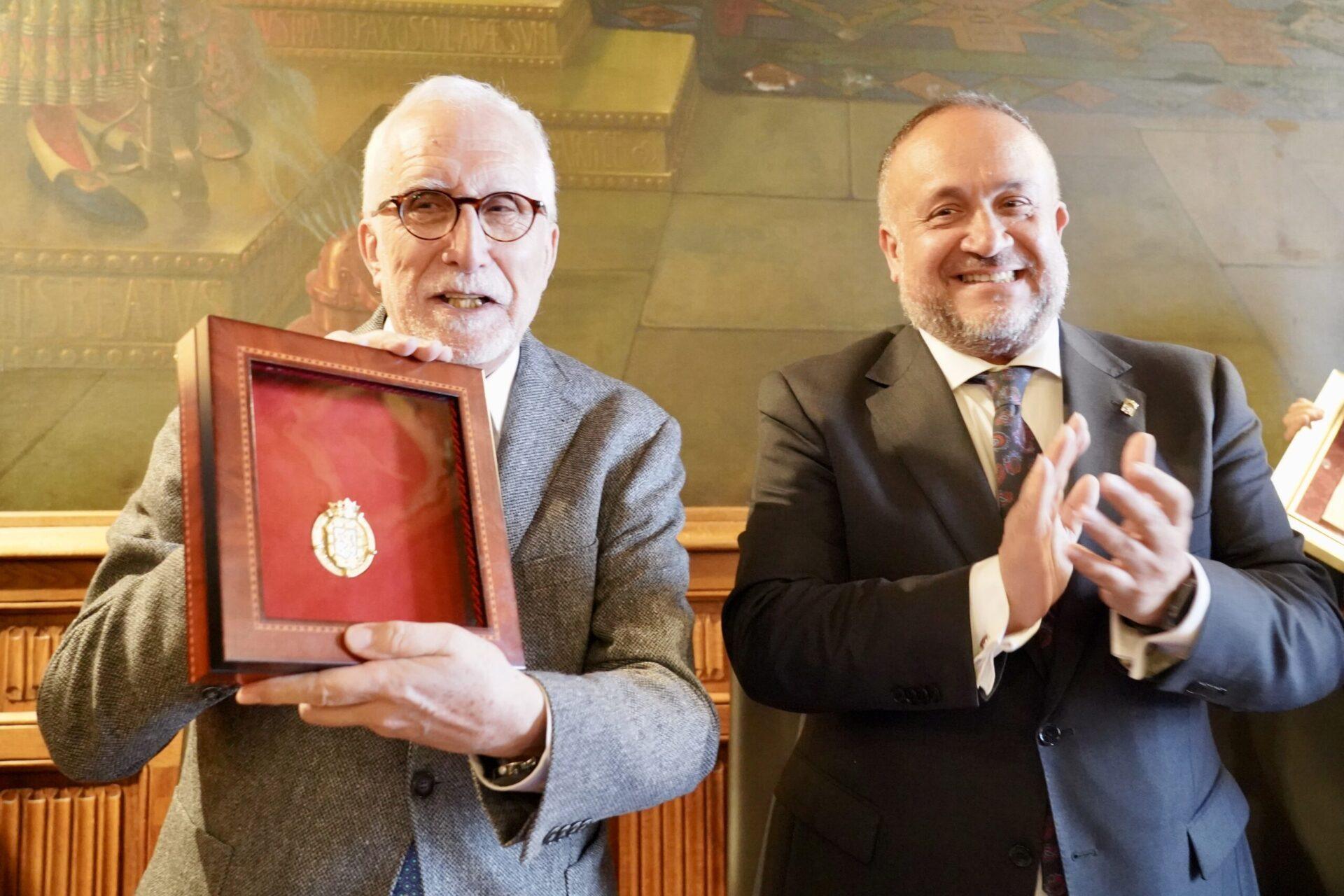 Luis Mateo Díez recibió este miércoles la Medalla de Oro de la Provincia de León de manos del presidente de la Diputación, Gerardo Álvarez Courel, quien se refirió a él como “uno de los escritores más relevantes en el panorama nacional e internacional de las letras en lengua española”, al tiempo que le agradeció “todo lo que nos ha dado y lo que le queda por darnos, que esperamos que sea mucho”.