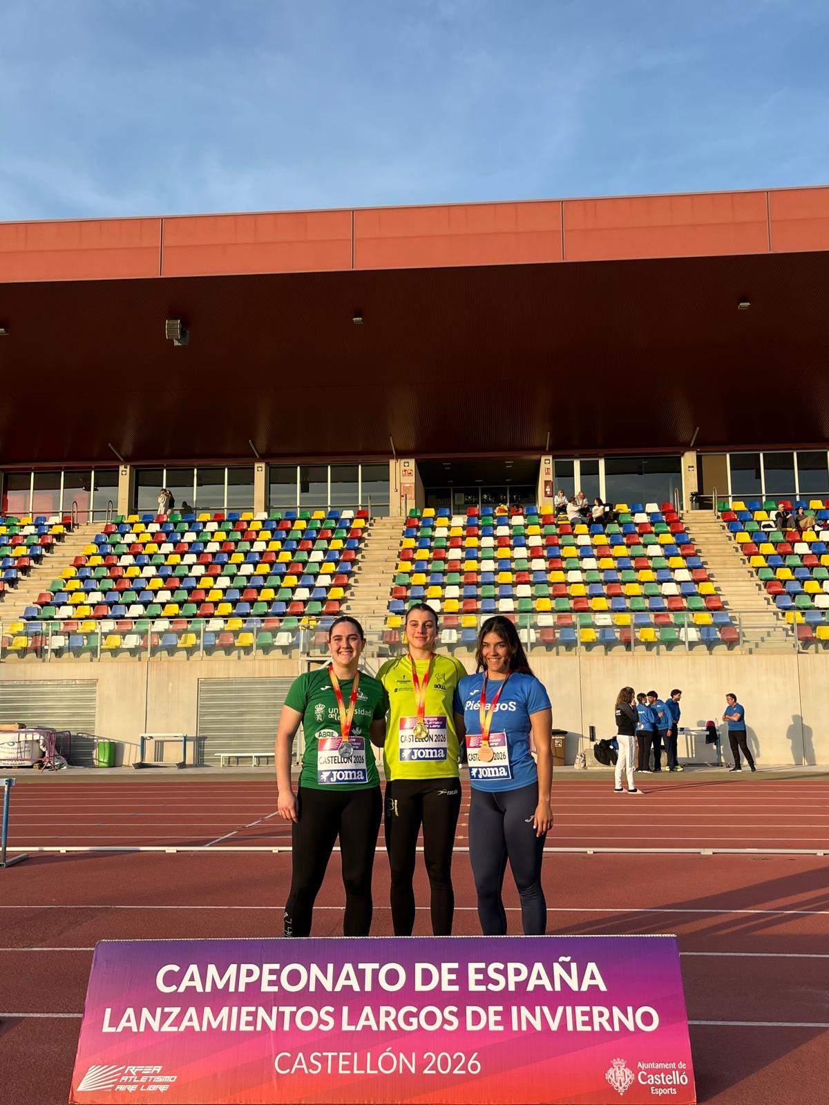 El Universidad de León Sprint Atletismo firmó una gran actuación femenina en el Campeonato de España de Lanzamientos Largos de Invierno disputado este fin de semana en Castellón de la Plana, donde sus atletas lograron subir al podio en dos ocasiones y sumar varios puestos entre las mejores del país.