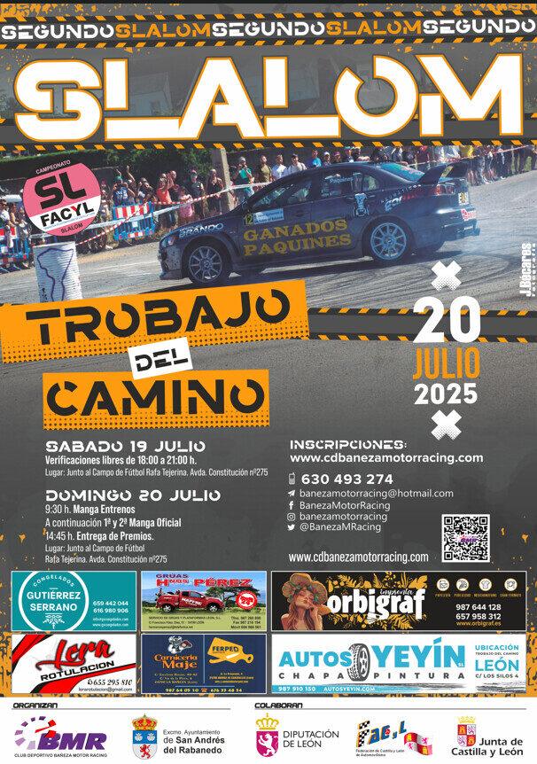 El municipio de San Andrés del Rabanedo acogerá los días 19 y 20 de julio la celebración de la segunda edición Slalom ‘Trobajo del Camino’, tras el éxito cosechado el año pasado. En esta edición 70 pilotos nacionales e internacionales competirán en esta prueba autorizada por la Federación de Automovilismo de Castilla y León, puntuable para el Campeonato de Castilla y León de Slalom.