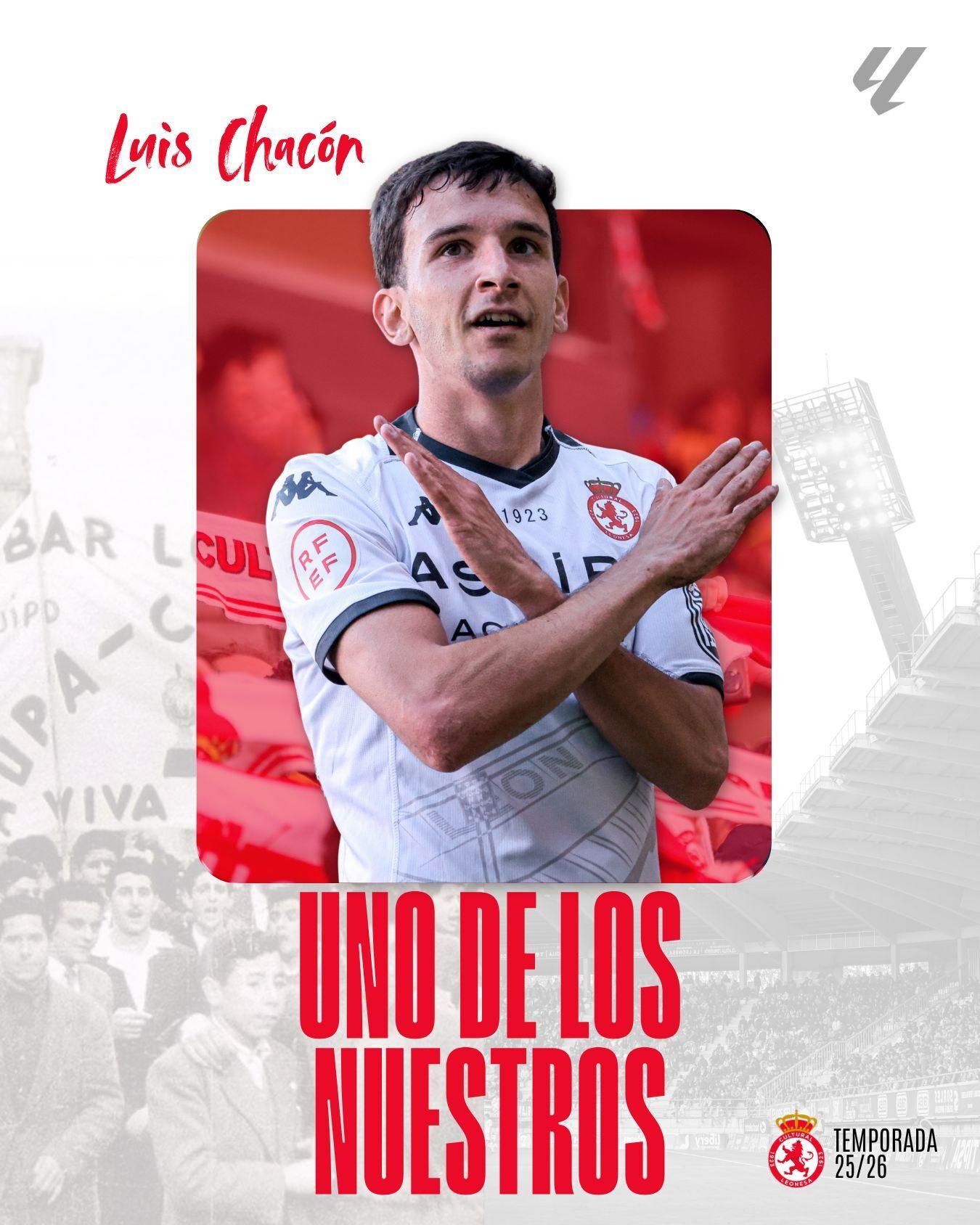 La Cultural y Deportiva Leonesa ha cerrado un acuerdo con el RC Deportivo para que Luis Rodríguez Chacón vuelva a vestir la elástica blanca hasta final de temporada. El futbolista gallego, nacido en Pontedeume el 30 de mayo de 2000, se incorpora en calidad de cedido y será una de las piezas clave en el nuevo proyecto culturalista en LaLiga Hypermotion.
