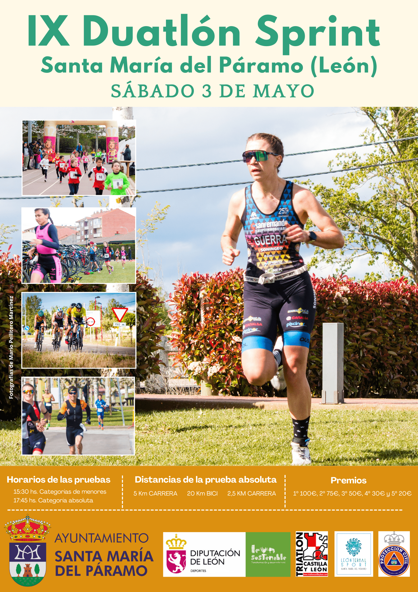 La concejalía de Deportes del Ayuntamiento de Santa María del Páramo informa de la apertura de las inscripciones del IX Duatlon Sprint Santa María del Páramo que tendrá lugar en la localidad el próximo sábado 3 de mayo, única prueba a nivel provincial.