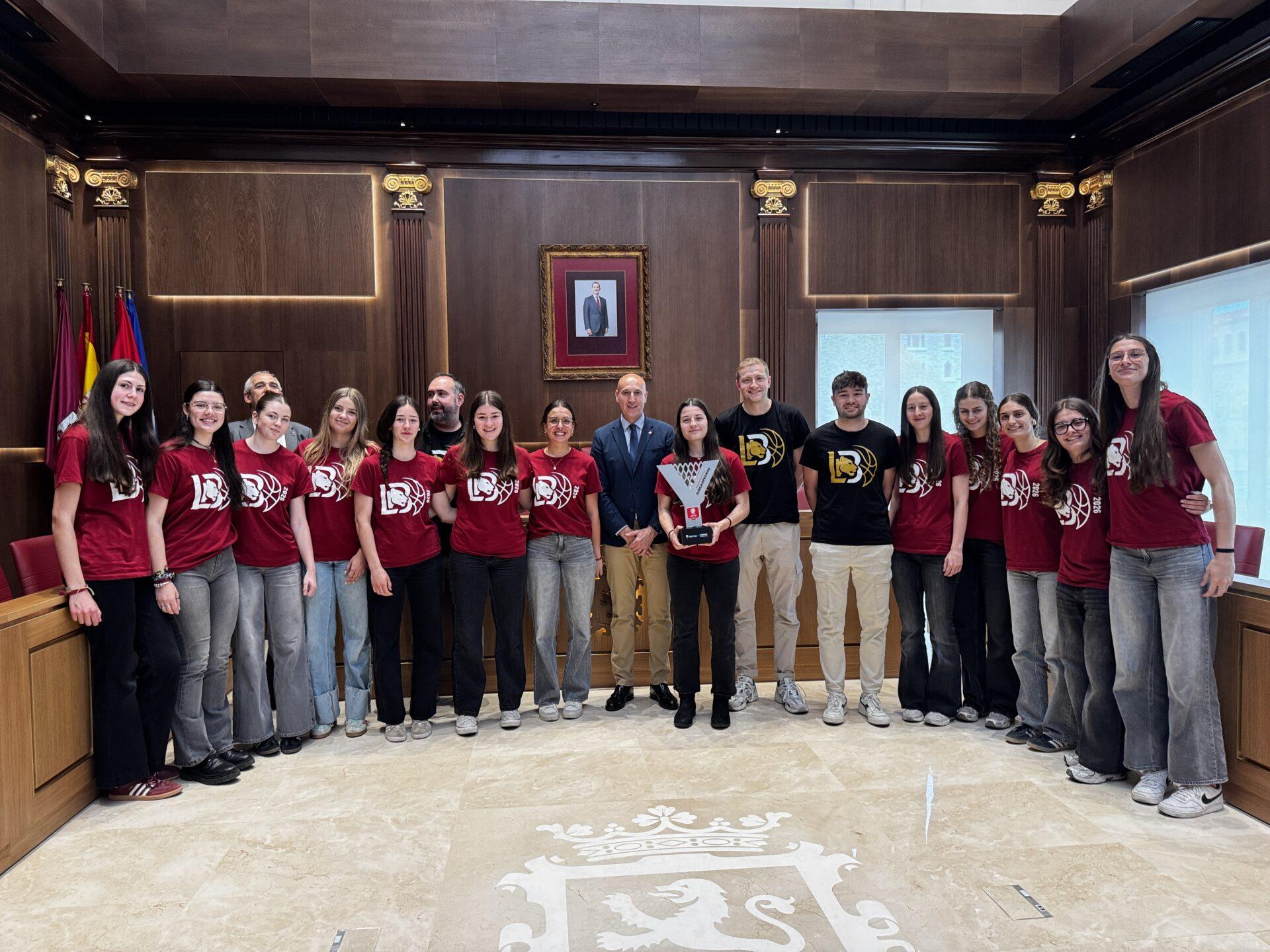 El alcalde de León, José Antonio Diez, acompañado del concejal de Deportes, Vicente Canuria, ha recibido hoy en el Salón de Plenos a las jugadoras de este equipo de baloncesto que ya tienen experiencia como campeonas en las categorías infantil y cadete.