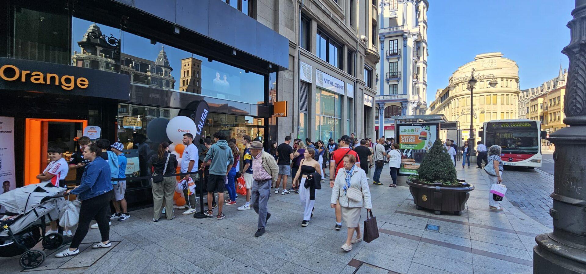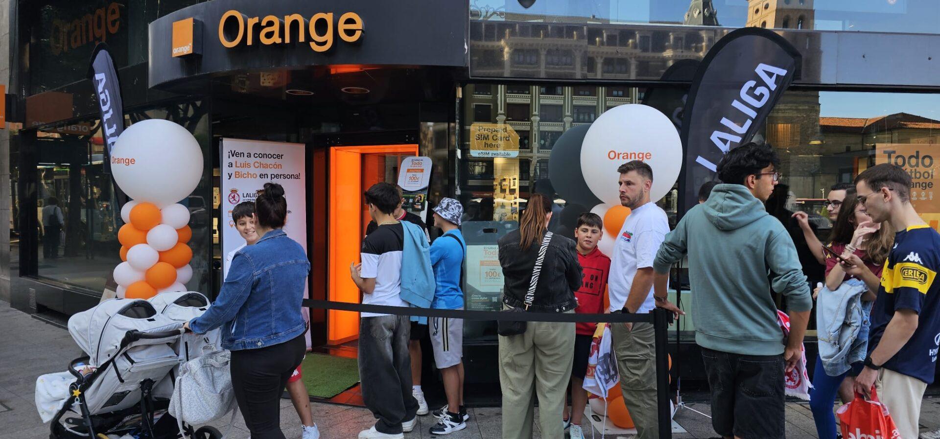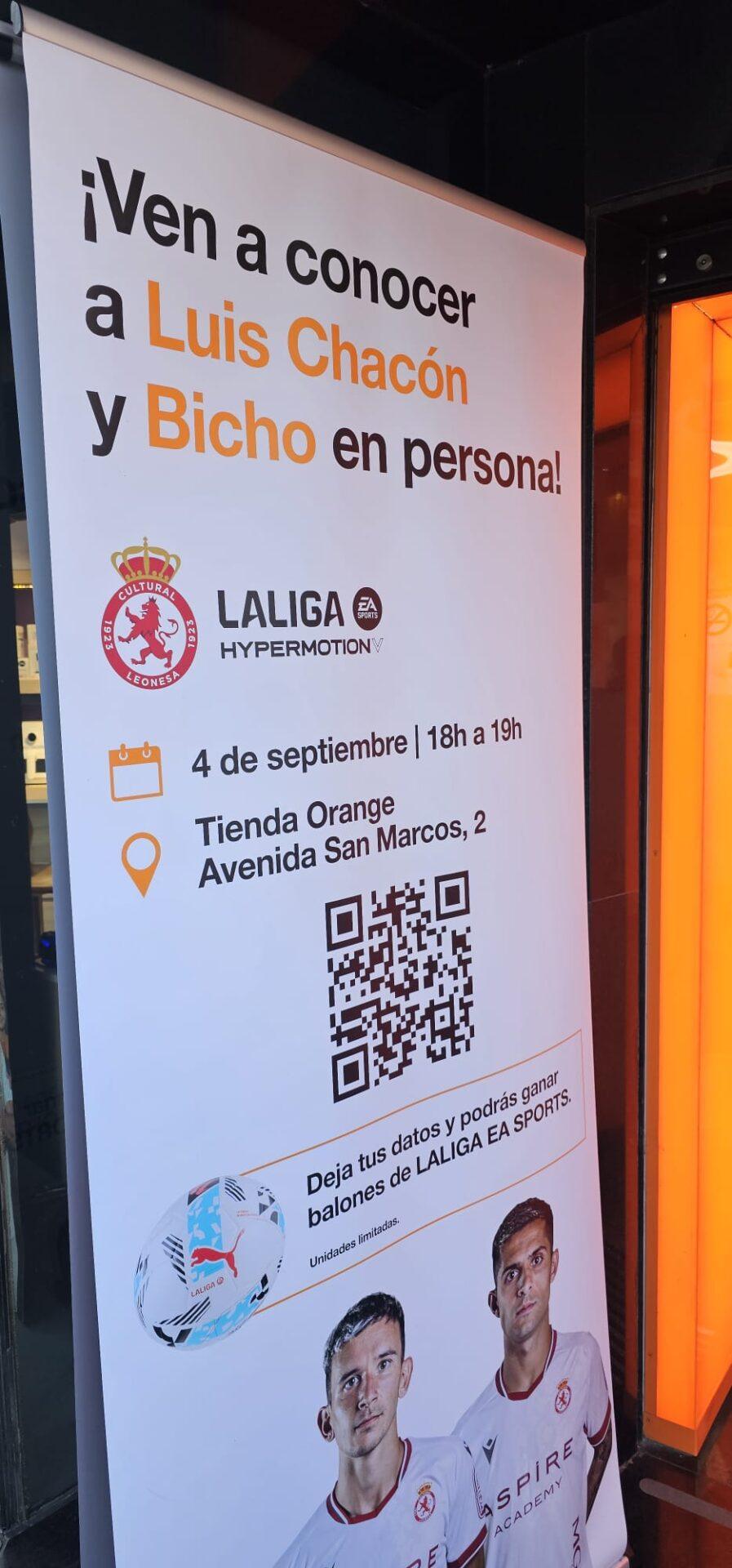 Un gran número de aficionados de la Cultural y Deportiva Leonesa se congregó hoy en el centro de la ciudad para recibir a dos de sus figuras más destacadas: Luis Chacón y ‘Bicho’. La tienda Orange de la Avenida San Marcos fue el lugar escogido de un evento que originó una larga cola de seguidores ansiosos por conocer a sus ídolos.