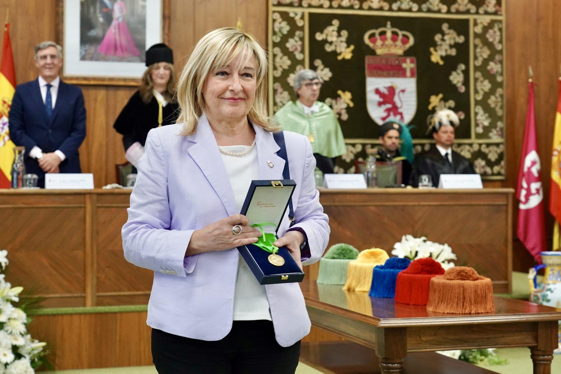 Una emocionada Ana del Ser recibe la primera Medalla Reina Urraca de León concedida por la Universidad