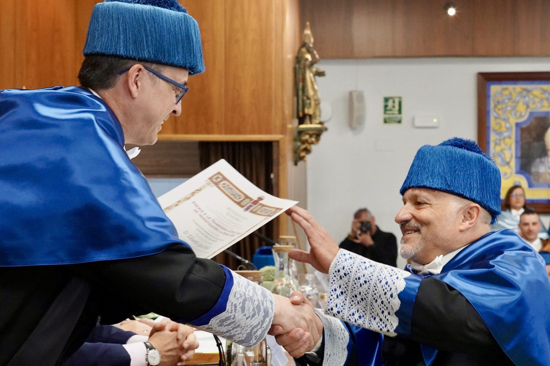 En el mismo acto académico, presidido por la rectora, Nuria González, tuvo lugar la imposición de insignias a los nuevos doctores del curso 2024-2025, la entrega de los Premios Extraordinarios de Doctorado, los Diplomas-Mención de la Alianza Eureca-Pro, así como los premios correspondientes al pasado curso concedidos por distintas entidades. Asimismo, se hizo entrega de las distinciones honoríficas por 25 años de servicio y por jubilación al personal docente e investigador y al personal técnico de gestión y de administración y servicios, con el nombramiento de los nuevos doctores como broche final.