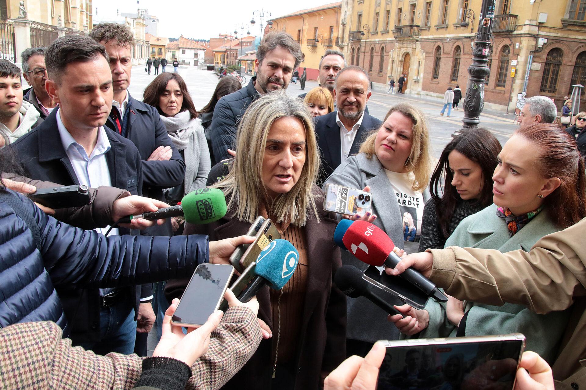 A los pies de la catedral de León, y arropada por el diputado nacional, Javier Alfonso Cendón, y el presidente de la Diputación, Gerardo Álvarez Courel, entre otros cargos del Partido Socialista en León, se preguntó “qué está pasando aquí, en esta comunidad autónoma, con las plazas públicas y gratuitas en los niños de cero y las niñas de cero a tres años. ¿Dónde están esas plazas, que además el Gobierno de España ha dado esa inversión?”. También aludió a la reciente aprobación en Consejo de Ministros de 2.559 millones de euros para becas, de los que 122 serán para Castilla y León. Mientras, reprochó la gestión del Gobierno autonómico del Partido Popular.