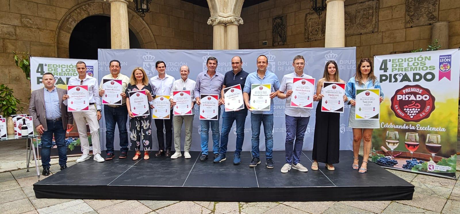 La Diputación de León ha celebrado este viernes la entrega de galardones de la IV edición de los Premios Pisado, con los que la institución provincial reconoce a los mejores vinos de la provincia. Durante el acto, celebrado en el patio del Palacio de los Guzmanes, cinco vinos se alzaron como vencedores en sus respectivas categorías y diez más consiguieron un accésit, dos por cada una de ellas.