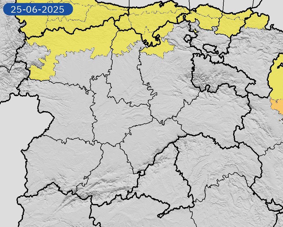 Además, Aemet ha declarado alerta amarilla por lluvias y tormentas en la cordillera Cantábrica de León, con precipitación de hasta 25 mm acumulados en una hora, con posibilidad de granizo y rachas de viento fuertes.