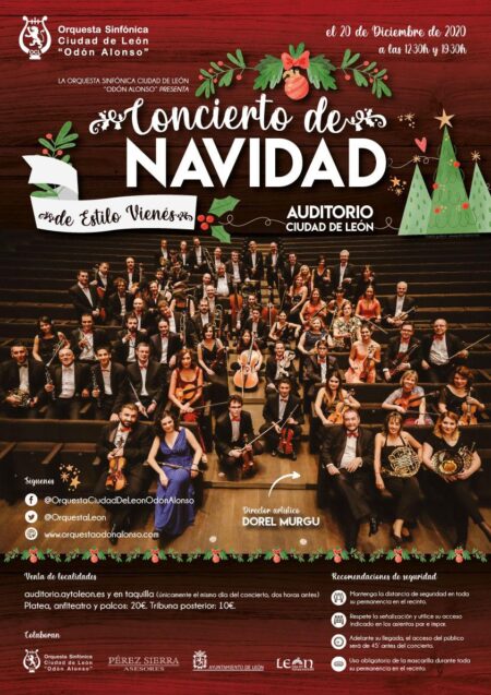 El Auditorio Ciudad de León acoge este domingo 20 de diciembre el concierto de Navidad estilo vienés de la Orquesta Sinfónica de León ‘Odón Alonso’. Bajo la dirección artística de Dorel Murgu se ofrecerán dos sesiones, a las 12.30 y a las 19.30 horas. La Orquesta leonesa intentará transportar al público asistente a un ambiente vienés con obras de la familia Strauss, Lehár, Lanner, entre otros.