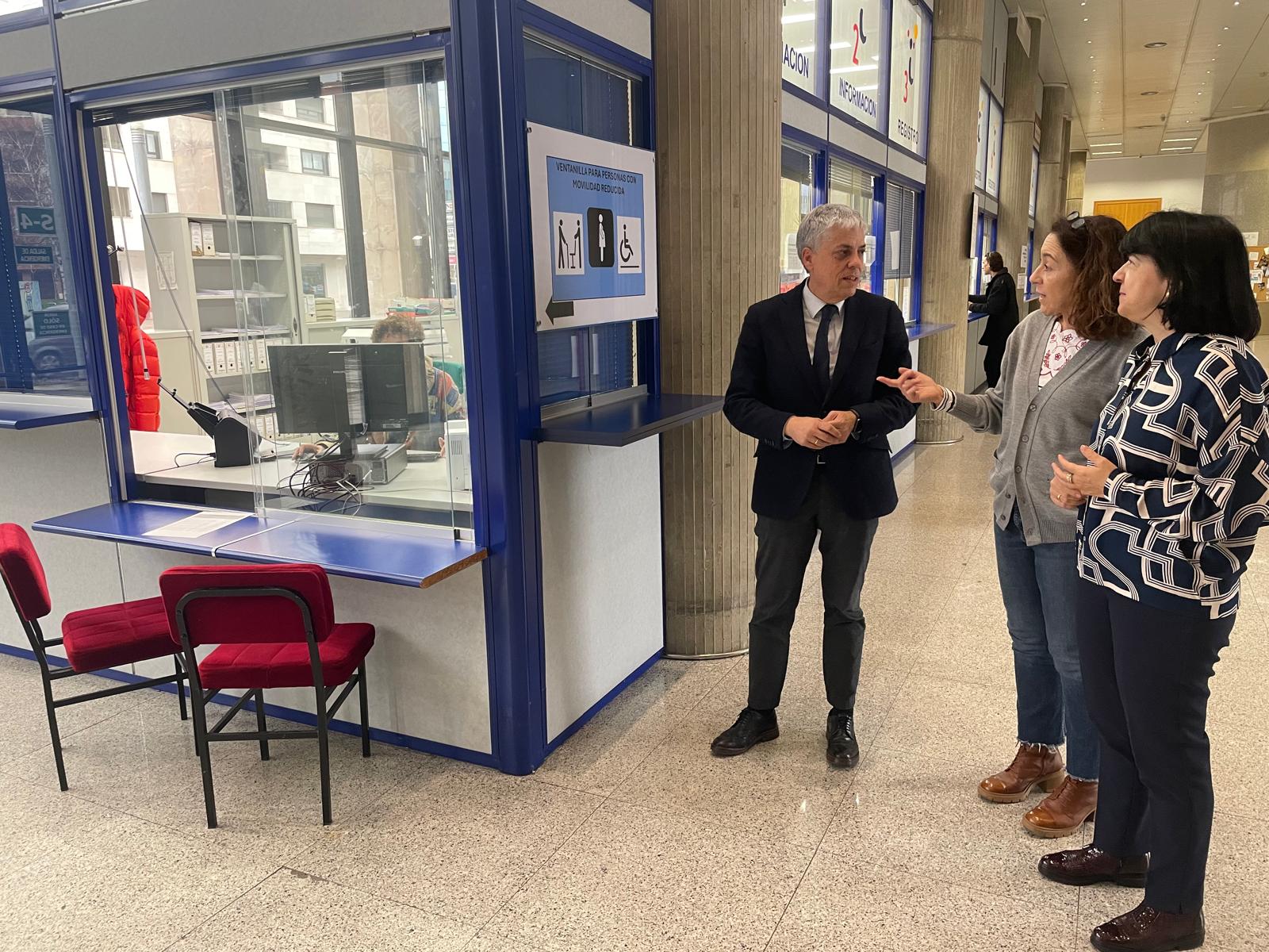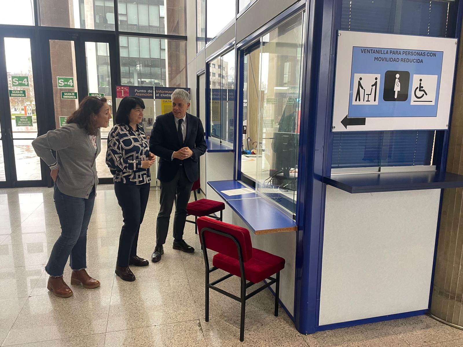 Se trata de una ventanilla especial para la atención a personas con movilidad reducida, en la que ha estado el delegado territorial, Eduardo Diego, acompañado de la secretaria territorial, Ana María López; y la jefa de la sección de Asistencia en Materia de Registro, María Jesús García.