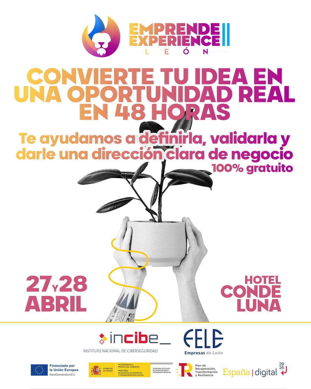 La Federación Leonesa de Empresarios (FELE) organiza el próximo lunes y martes, 27 y 28 de abril, en el Hotel Barceló Conde Luna la II edición de Emprende Experience León, una iniciativa intensiva destinada a transformar ideas de negocio en proyectos con viabilidad real que se enmarca dentro del programa Instituto Nacional de Ciberseguridad (Incibe) Emprende.
