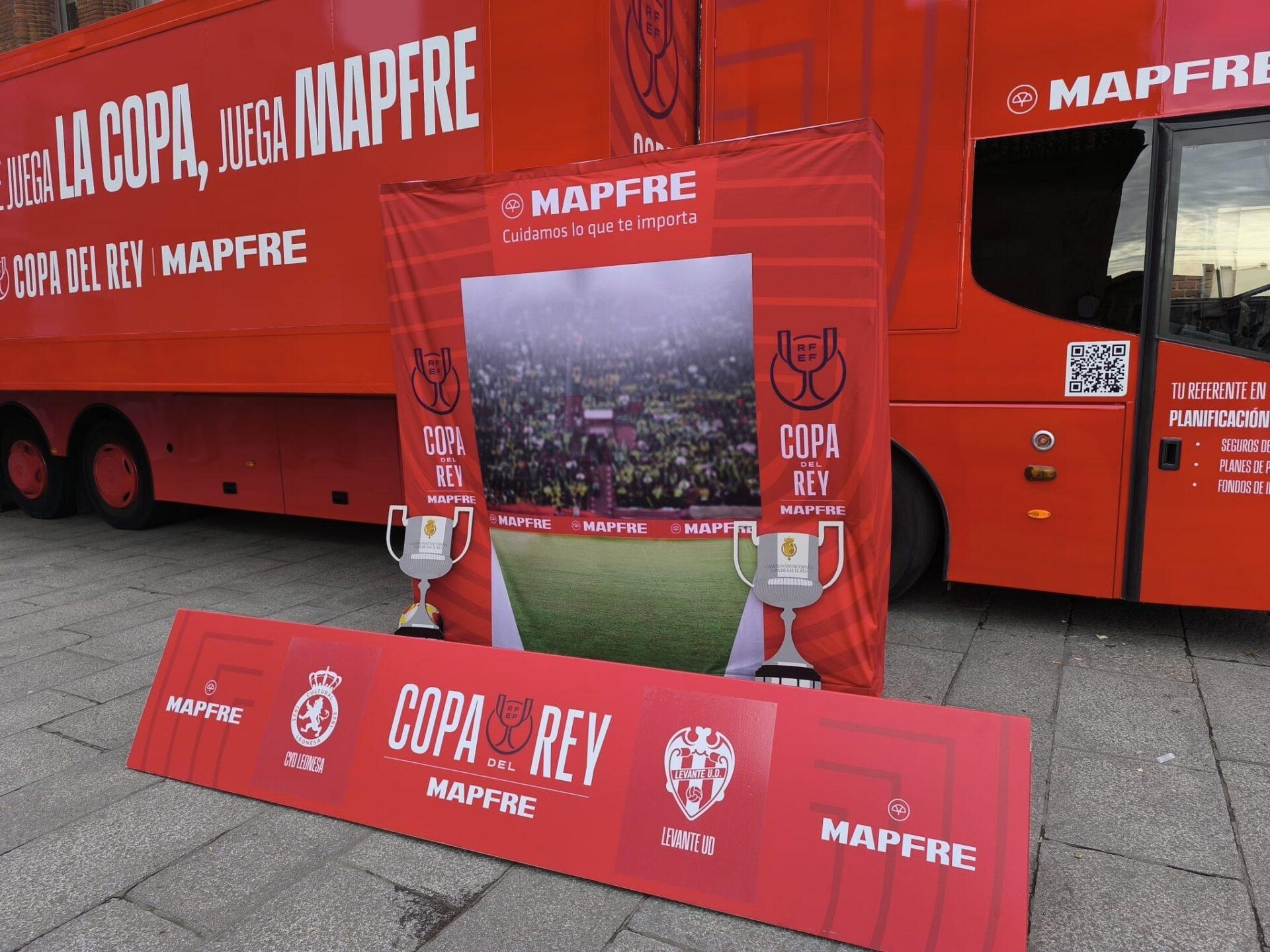 Con motivo del encuentro entre la Cultural y el Levante, se ha instalado en Botines el bus de la Copa con Mapfre. Donde todo aquel aficionado que se acerque podrá disfrutar de juegos y regalos y hacerse una foto en el photocall como un jugador de la Copa más. Por la tarde, estará en las inmediaciones del estadio Reino de León.